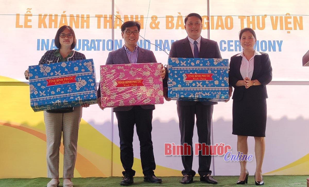 Giám đốc Sở Ngoại vụ tỉnh Bình Phước, Phó chủ tịch Thường trực Hội Hữu nghị Việt Nam - Hàn Quốc Phạm Thị Anh Thư trao thư tri ân và quà cho nhà tài trợ