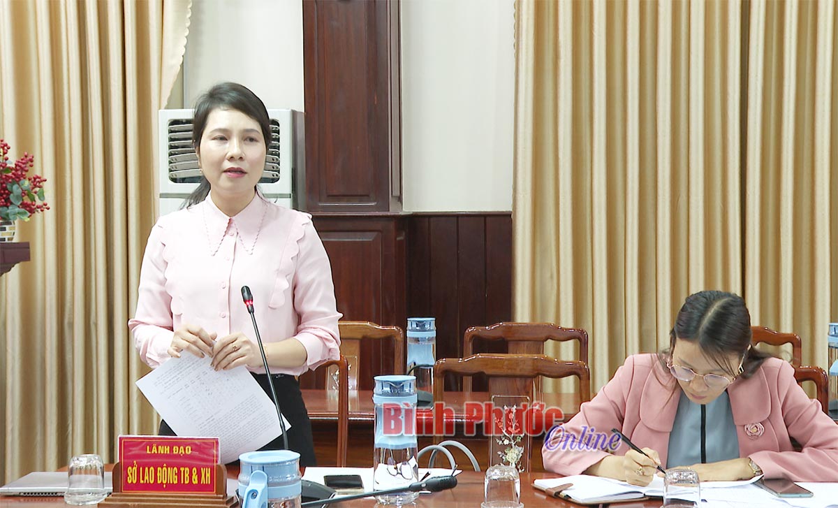 Giám đốc Sở Lao động - Thương binh - Xã hội Huỳnh Thị Thùy Trang báo cáo tiến độ công tác giảm nghèo của tỉnh