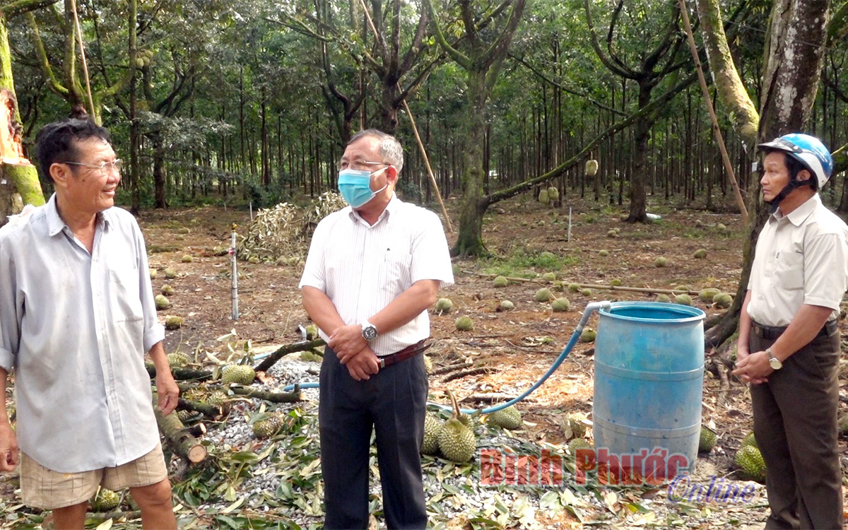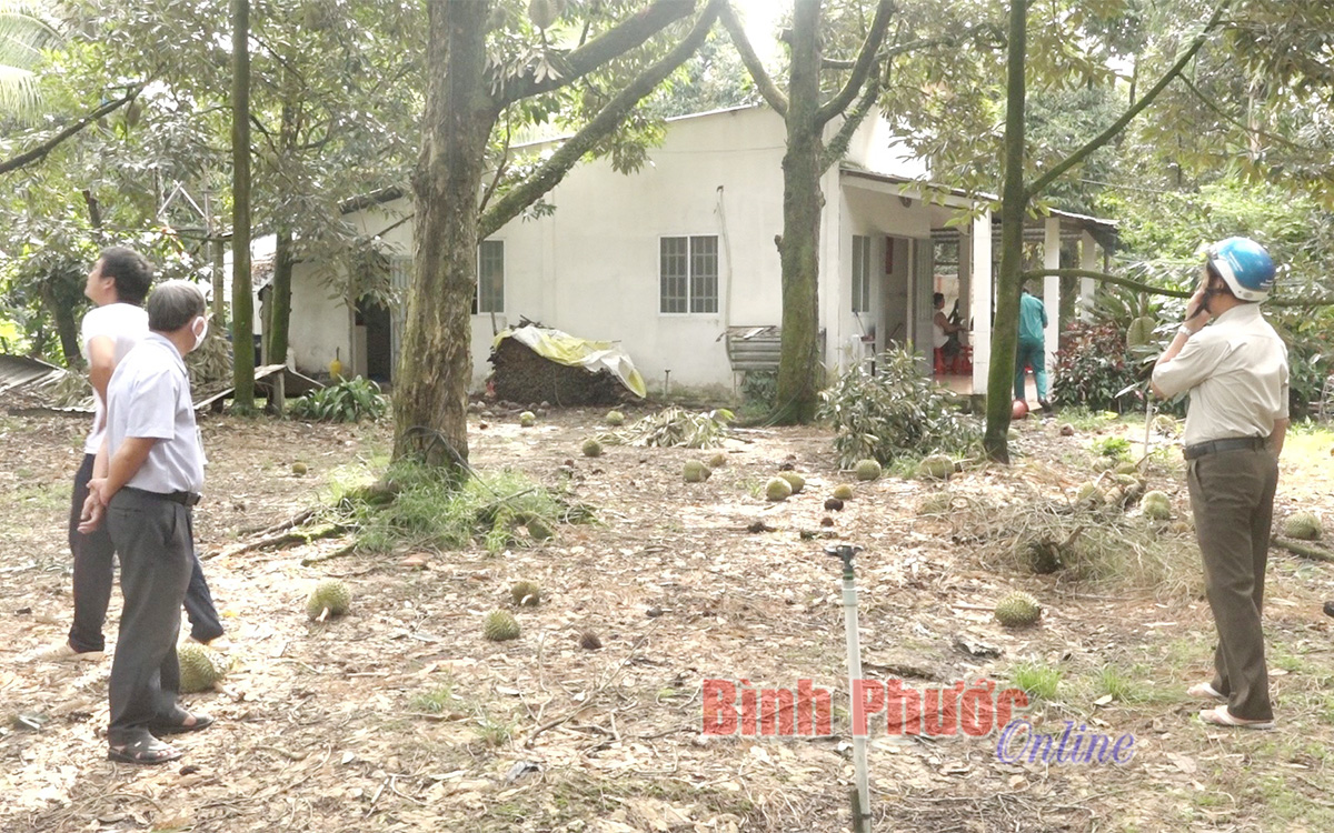 Gia đình ông Nguyễn Văn Tần, ấp 2, xã Thành Tâm, Chơn Thành là một trong những hộ bị thiệt hại nặng nhất với 2 ha sầu riêng bị gãy cành, rụng trái, ước thiệt hại hơn 500 triệu đồng. Ông Tần cho biết: “Trận mưa kèm gió lớn kéo dài chỉ hơn 15 phút nhưng đã khiến nhiều cây sầu riêng của gia đình bị hư hại, rụng hơn 10 tấn sầu riêng non. Đa số những trái có trọng lượng từ 2 đến 4 kg nhưng chưa đủ tuổi cắt cũng bị rụng đầy gốc, gia đình đành phải gom đi bỏ, rất là xót xa”.
