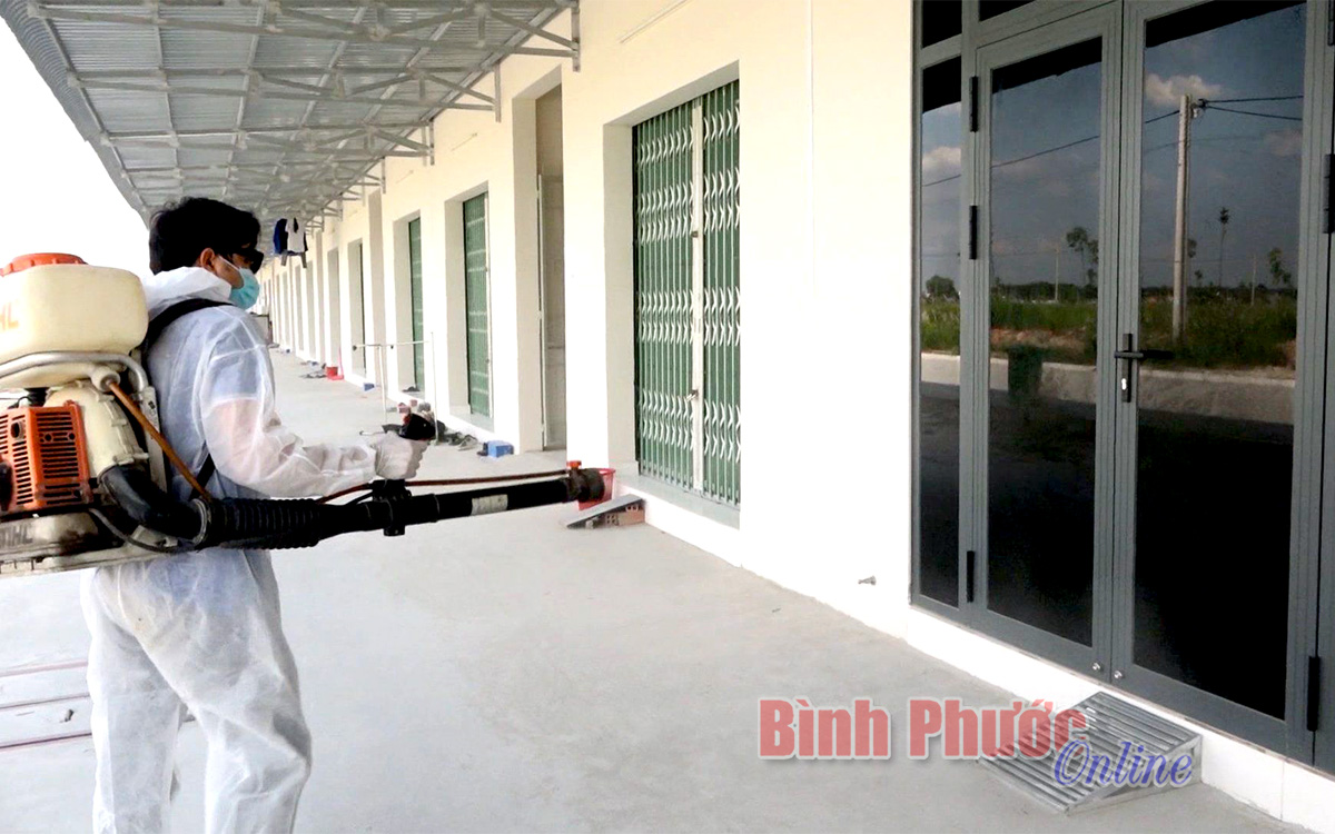 Trung tâm y tế huyện Chơn Thành thường xuyên phun xịt sát khuẩn phòng, chống Covid-19