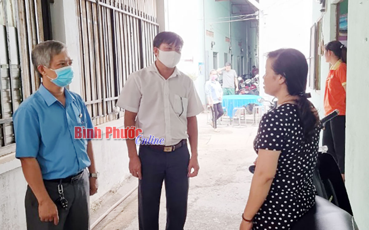 Tại những nơi đến, Chủ tịch LĐLĐ huyện Lê Thành Hòa đã gặp gỡ, thăm hỏi tình hình đời sống và đề nghị công nhân, chủ khu nhà trọ quan tâm, thực hiện tốt các quy định về phòng, chống dịch Covid-19. Vận động chủ nhà trọ tạo điều kiện hỗ trợ giảm tiền thuê phòng cho các gia đình công nhân có hoàn cảnh khó khăn.