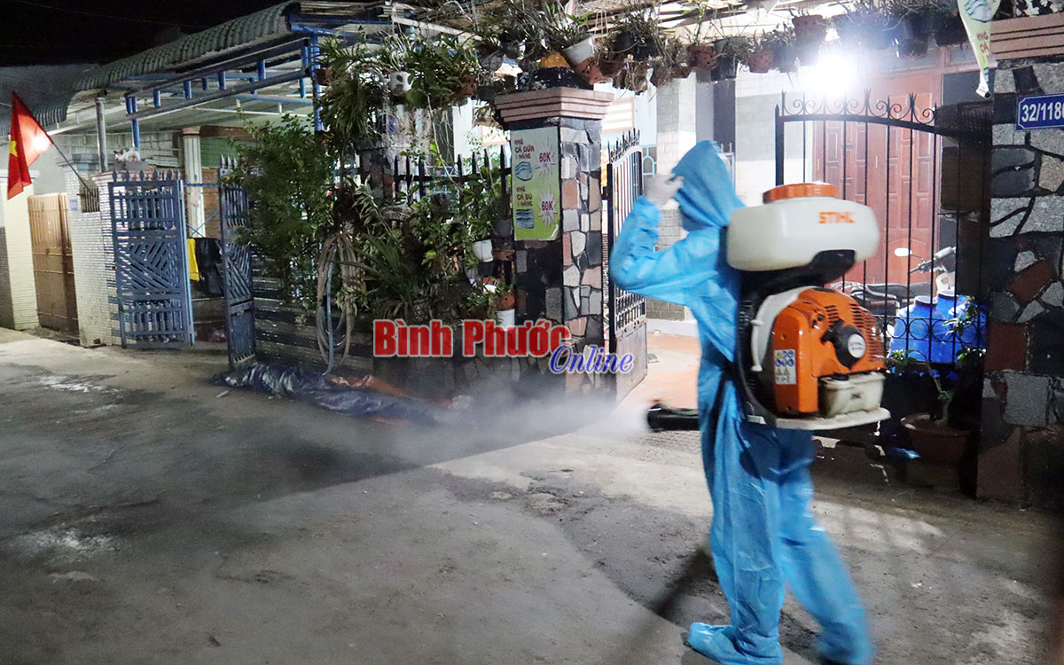 Trung tâm y tế thành phố Đồng Xoài phun khử khuẩn tại nhà 2 trường hợp trên tại phường Tân Đồng
