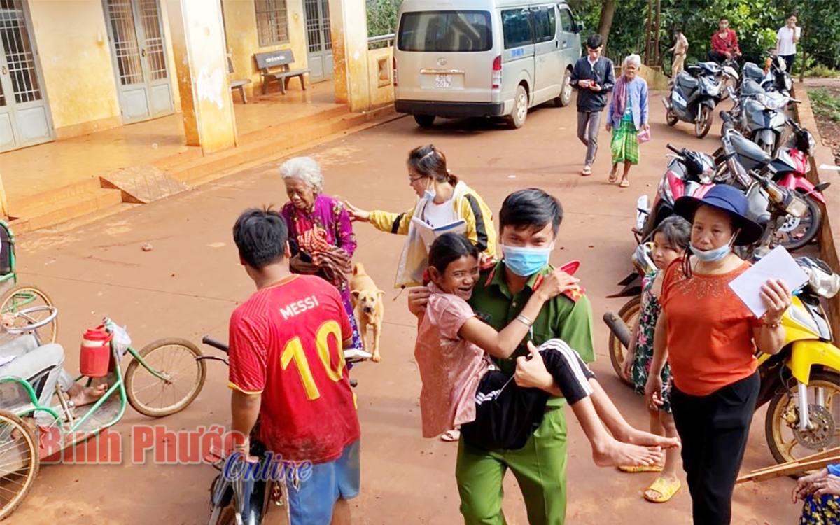 Nắm bắt được điều đó, Chi đoàn Công an xã Phú Riềng phối hợp Đoàn thanh niên Công an huyện đã đến tận thôn tổ chức làm căn cước công dân, kèm với tặng 120 phần quà là nhu yếu phẩm, vận động từ Công ty TNHH Phú Tài. Đối với những trường hợp đặc biệt, không thể tự đi lại được, tổ công tác đã đưa xe đến tận nhà hỗ trợ đưa, đón người dân.