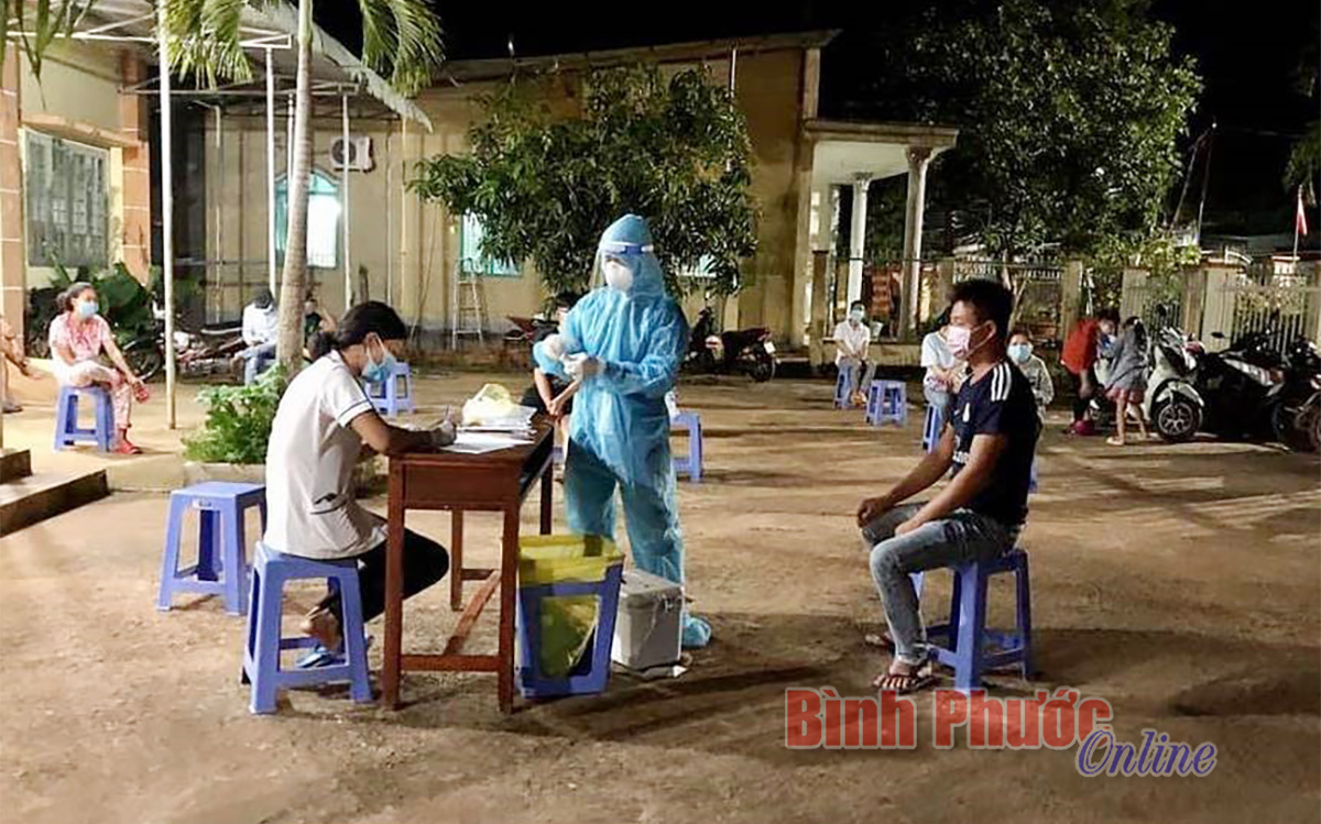 Ngành y tế huyện Hớn Quản xuyên đêm lấy mẫu xét nghiệm của người dân trên địa bàn xã Tân Hưng