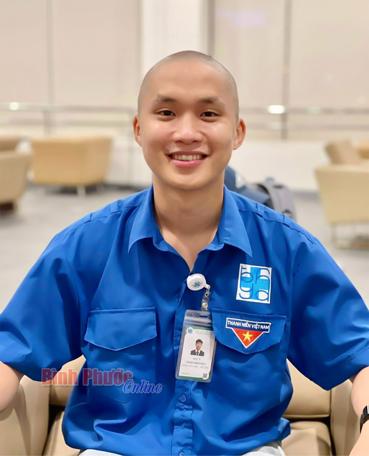 Điều ấn tượng nhất, trước khi lên đường, bác sĩ Đặng Minh Hiệu đã tự nguyện “xuống tóc”. Trong bài viết đăng trên báo Bình Phước online ngày 29-5, tôi đã bày tỏ sự xúc động cũng như ngưỡng mộ nụ cười đẹp như thiên thần với bức ảnh bác sĩ Đặng Minh Hiệu ngồi cho đồng nghiệp cạo hết mái tóc của mình.