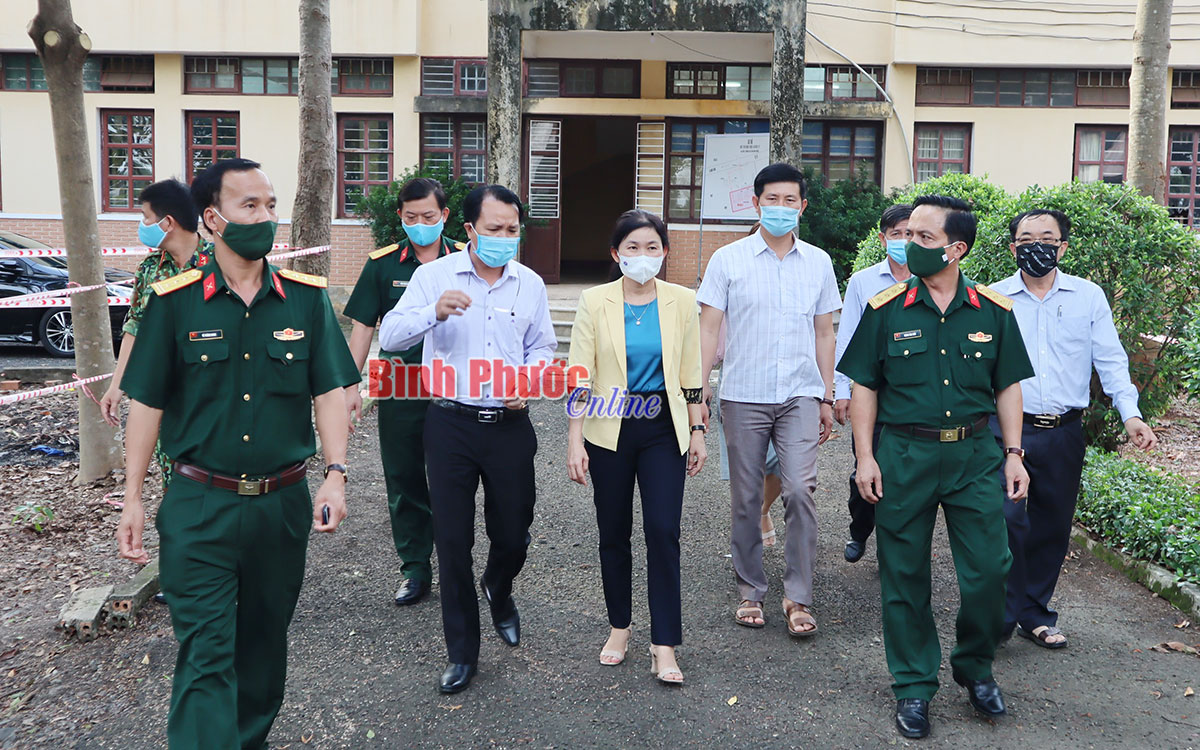 Ủy viên dự khuyết Trung ương Đảng, Ủy viên Ban Thường vụ Tỉnh ủy, Bí thư Thành ủy Đồng Xoài Tôn Ngọc Hạnh kiểm tra công tác chuẩn bị tại khu cách ly ký túc xá Trường Cao đẳng sư phạm Bình Phước (cũ)