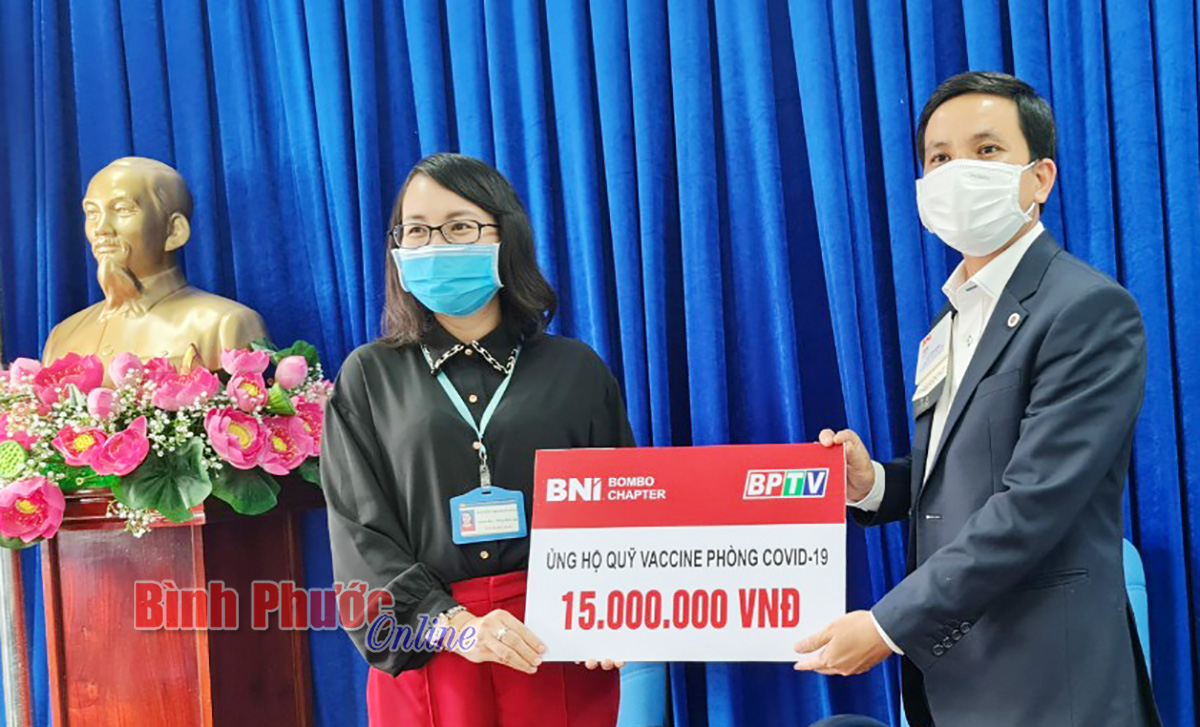 BNI BomBo Bình Phước ủng hộ 15 triệu đồng cho chương trình "Cùng BPTV ủng hộ Quỹ vắc xin phòng Covid-19"
