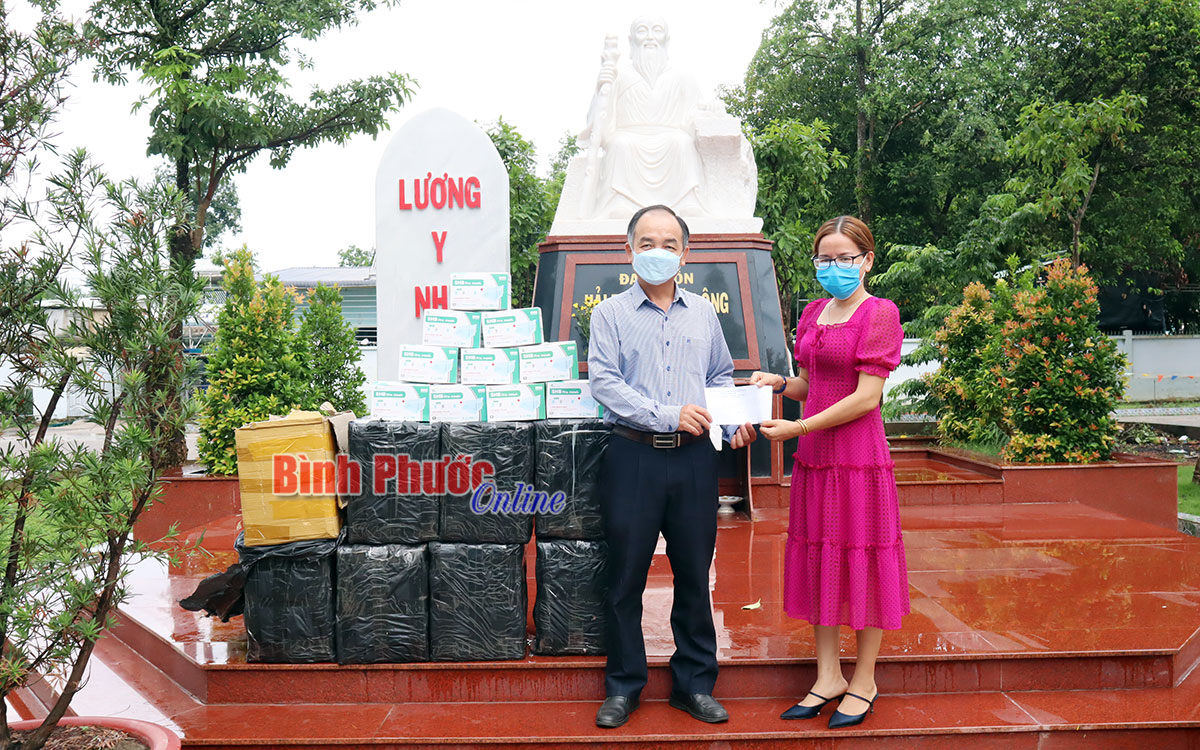 Đại diện đội xe bán tải tình nguyện hỗ trợ khẩu trang và kinh phí cho Trung tâm y tế thành phố Đồng Xoài