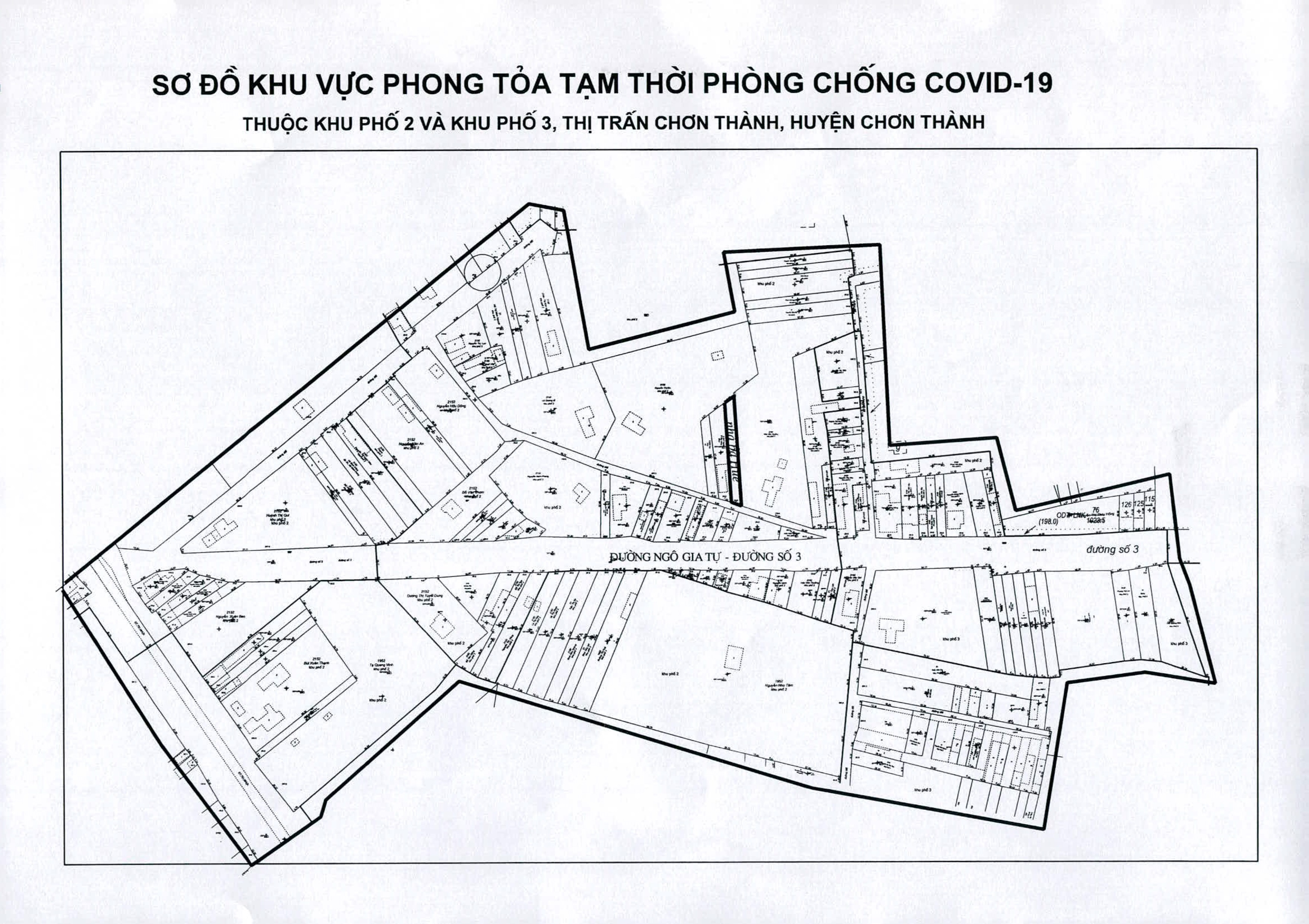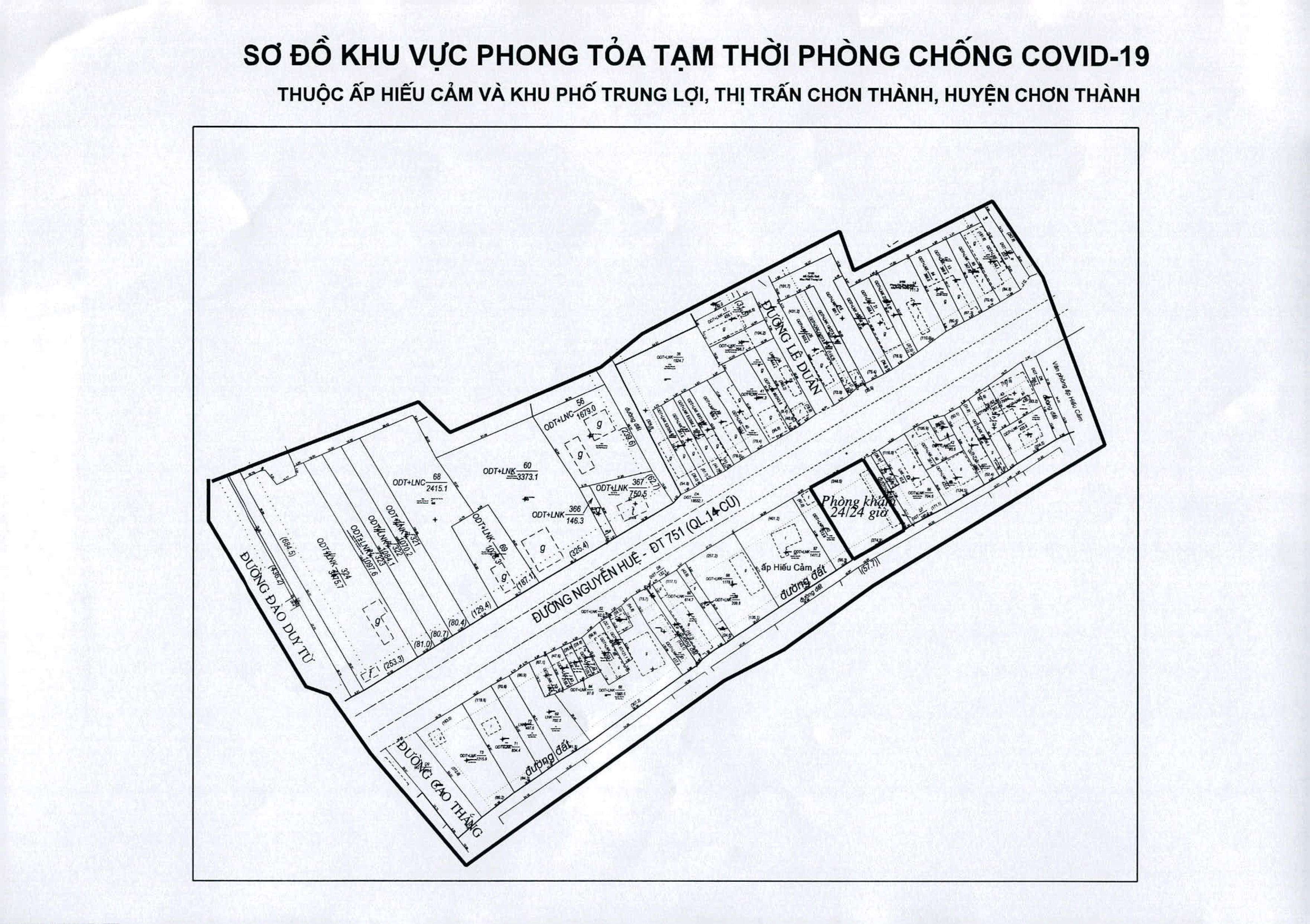 Sơ đồ một số khu vực phong tỏa tạm thời ở thị trấn Chơn Thành