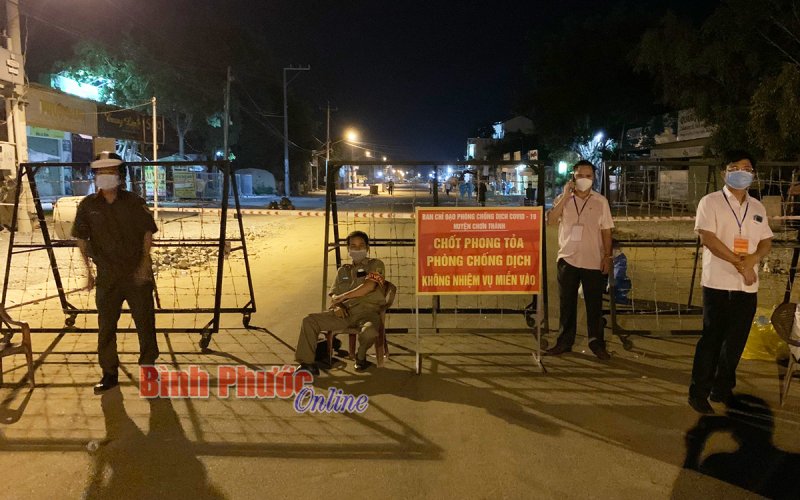 Phong tỏa ngay, truy vết nhanh, xét nghiệm rộng BPO - 20 giờ hôm nay (30-6), các chốt phong tỏa đã được lập tại 4 khu vực của thị trấn Chơn Thành, huyện Chơn Thành mà ca dương tính với Covid-19 đã từng đến.