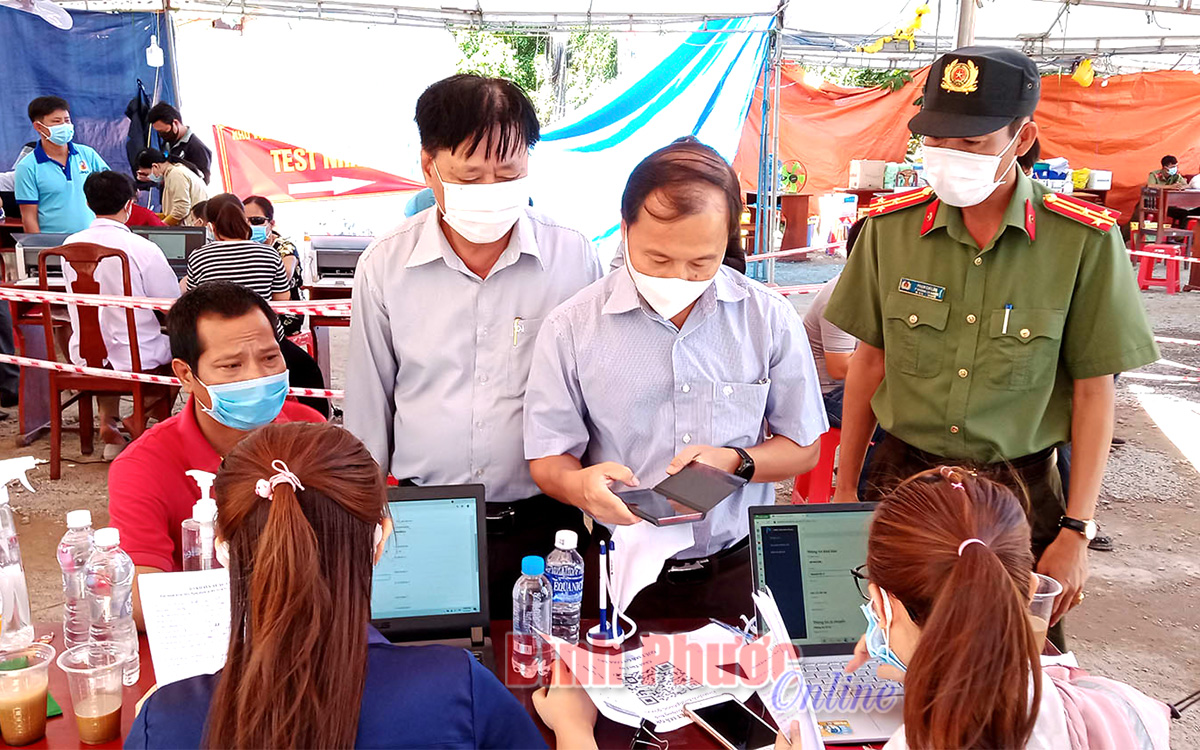 Ngoài tỉnh lộ ĐT741, lực lượng chức năng kiểm soát, phân luồng giao thông hoạt động liên tục. Trong khu vực kiểm soát y tế cũng rất đông. Các trường hợp chờ đến lượt khai báo y tế và lịch trình di chuyển được sắp xếp giữ khoảng cách, sát khuẩn, đeo khẩu trang để phòng dịch nghiêm túc. Những trường hợp từ thành phố Hồ Chí Minh, Bình Dương và các vùng có dịch đến Bình Phước đều được đề nghị cam kết thực hiện cách ly, hoặc quay về. Việc dặn dò đối với từng trường hợp rất rõ ràng, cụ thể.