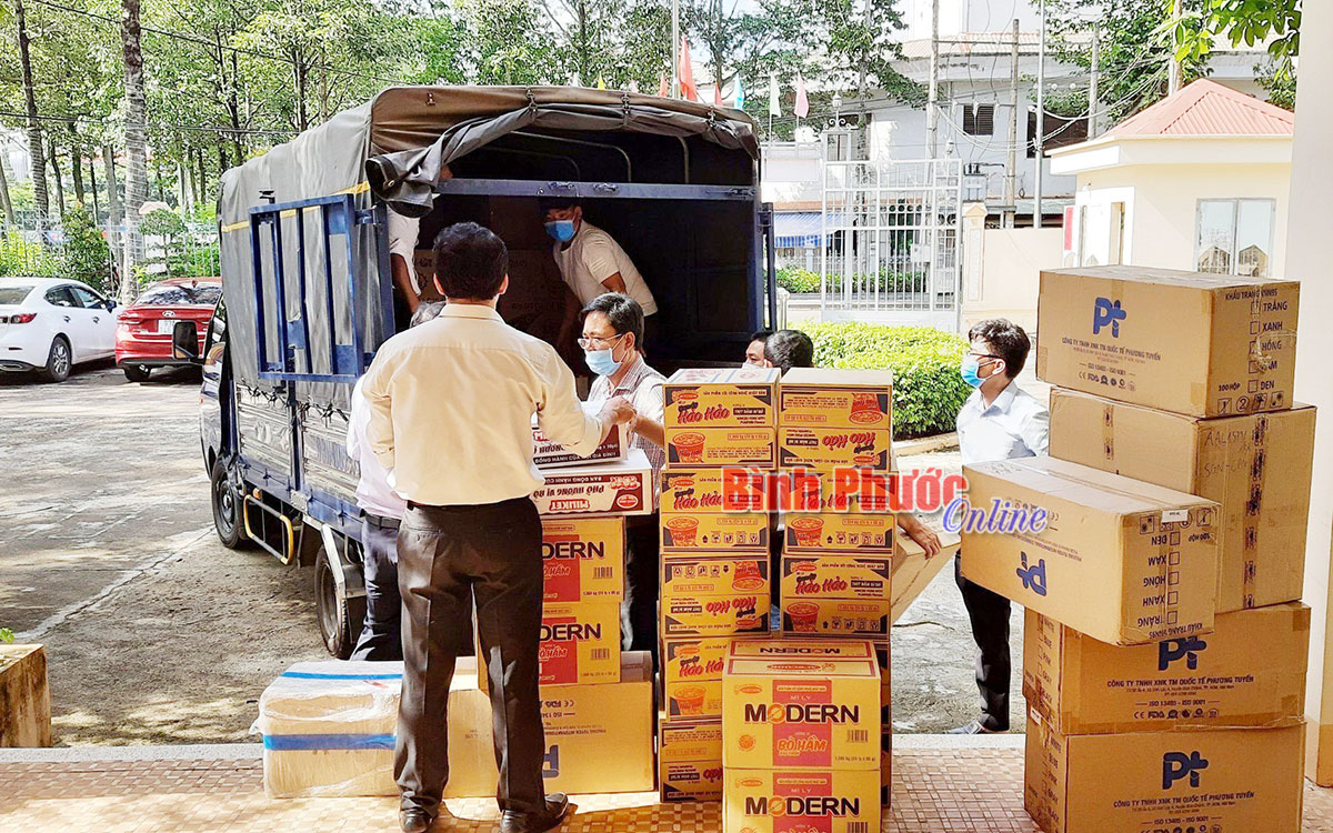 UBMTTQVN tỉnh đã nhanh chóng điều chuyển vật phẩm đến huyện Chơn Thành để hỗ trợ cho công tác phòng, chống dịch