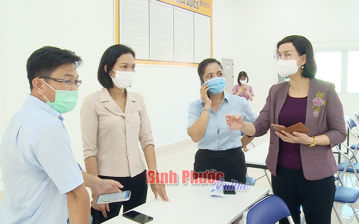 Ngành y tế tỉnh quyết tâm trong ngày hôm nay lấy mẫu xét nghiệm cho 10 ngàn công nhân trong các khu công nghiệp tại huyện Chơn Thành. Ngay sáng sớm, Ủy viên Ban thường vụ Tỉnh ủy, Phó chủ tịch UBND tỉnh, Phó trưởng Ban thường trực Ban chỉ đạo phòng, chống dịch Covid-19 tỉnh Trần Tuyết Minh đến kiểm tra công tác lấy mẫu xét nghiệm sàng lọc Covid-19 đối với lực lượng công nhân tại Công ty TNHH Beesco vina và động viên cán bộ, nhân viên ngành y tế đang làm nhiệm vụ lấy mẫu xét nghiệm.