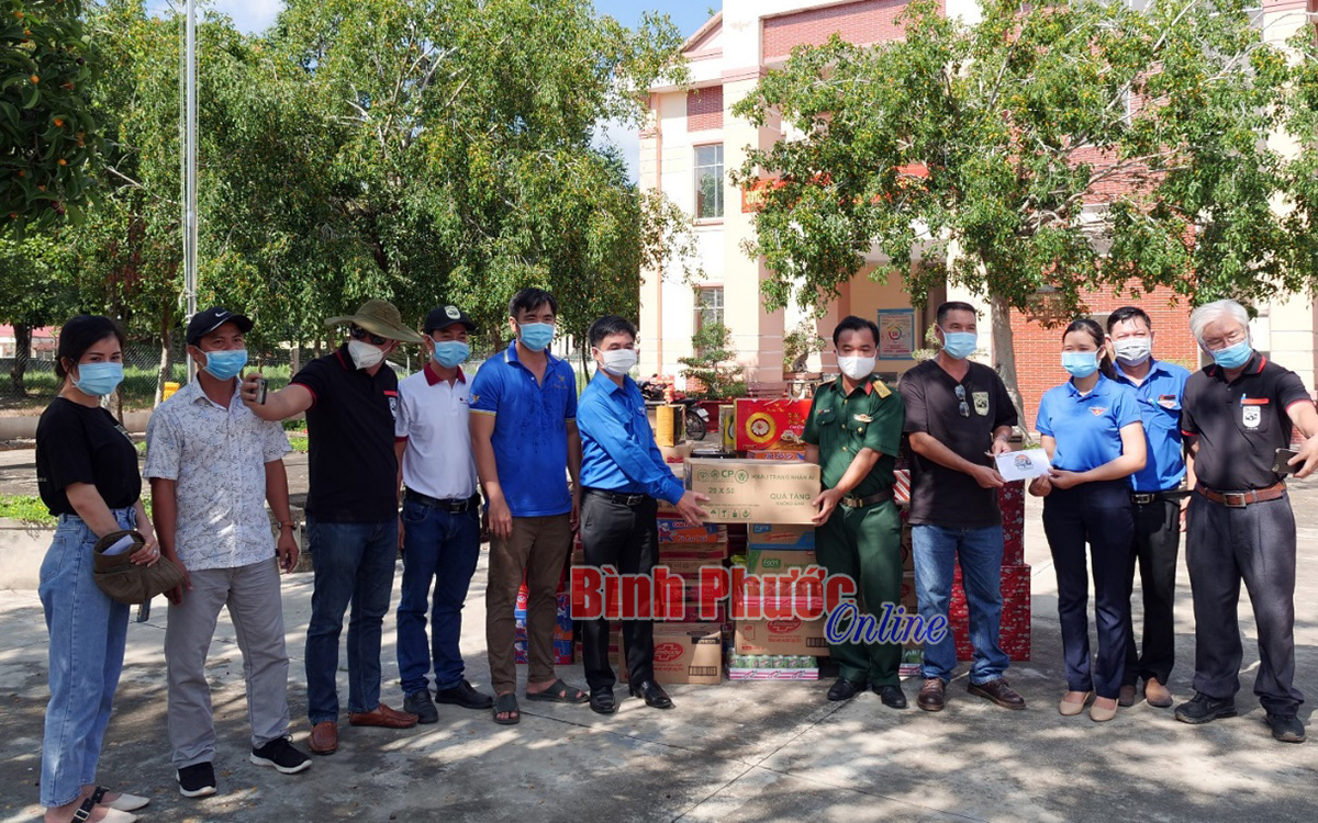 Bí thư Tỉnh đoàn Trần Quốc Duy và Câu lạc bộ Pick-up Bình Phước trao tặng nhu yếu phẩm, tiền mặt tại khu cách ly tập trung (huyện Chơn Thành)