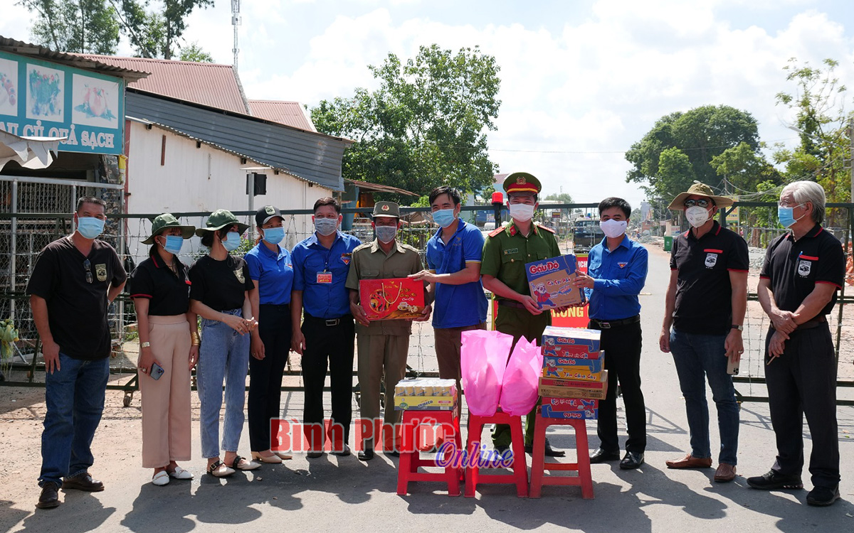 Bí thư Tỉnh đoàn Trần Quốc Duy trao tặng nhu yếu phẩm cho chốt kiểm soát giao thông và phòng, chống dịch Covid-19 Minh Long (Chơn Thành)