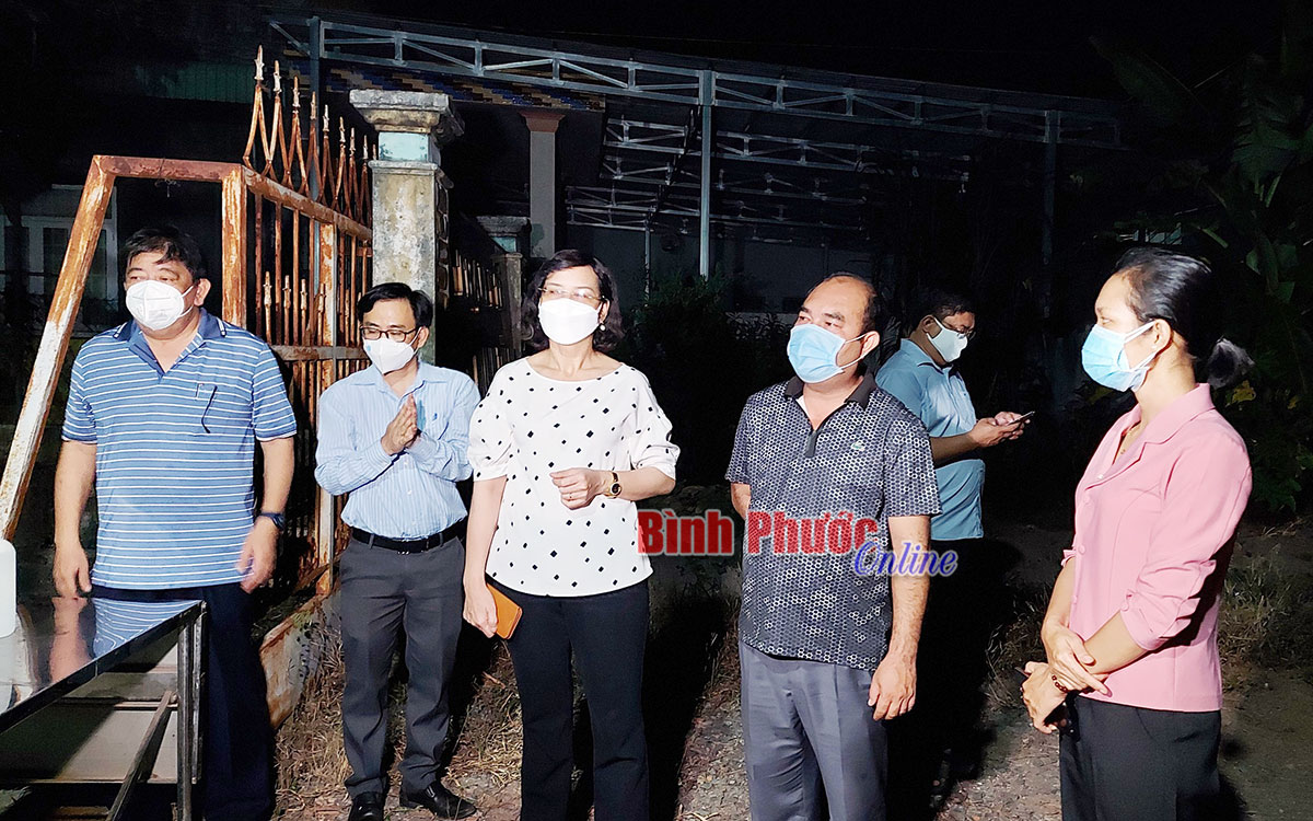Ủy viên Ban thường vụ Tỉnh ủy, Phó chủ tịch UBND tỉnh, Phó trưởng Ban thường trực Ban chỉ đạo phòng, chống Covid-19 tỉnh Trần Tuyết Minh đã có mặt, cùng lãnh đạo huyện Chơn Thành chỉ đạo tại hiện trường phong tỏa. Ảnh: Phạm Tăng