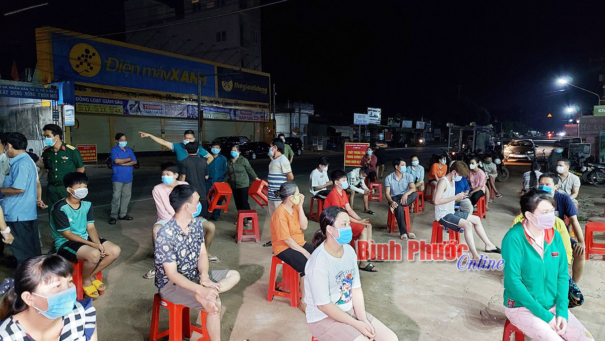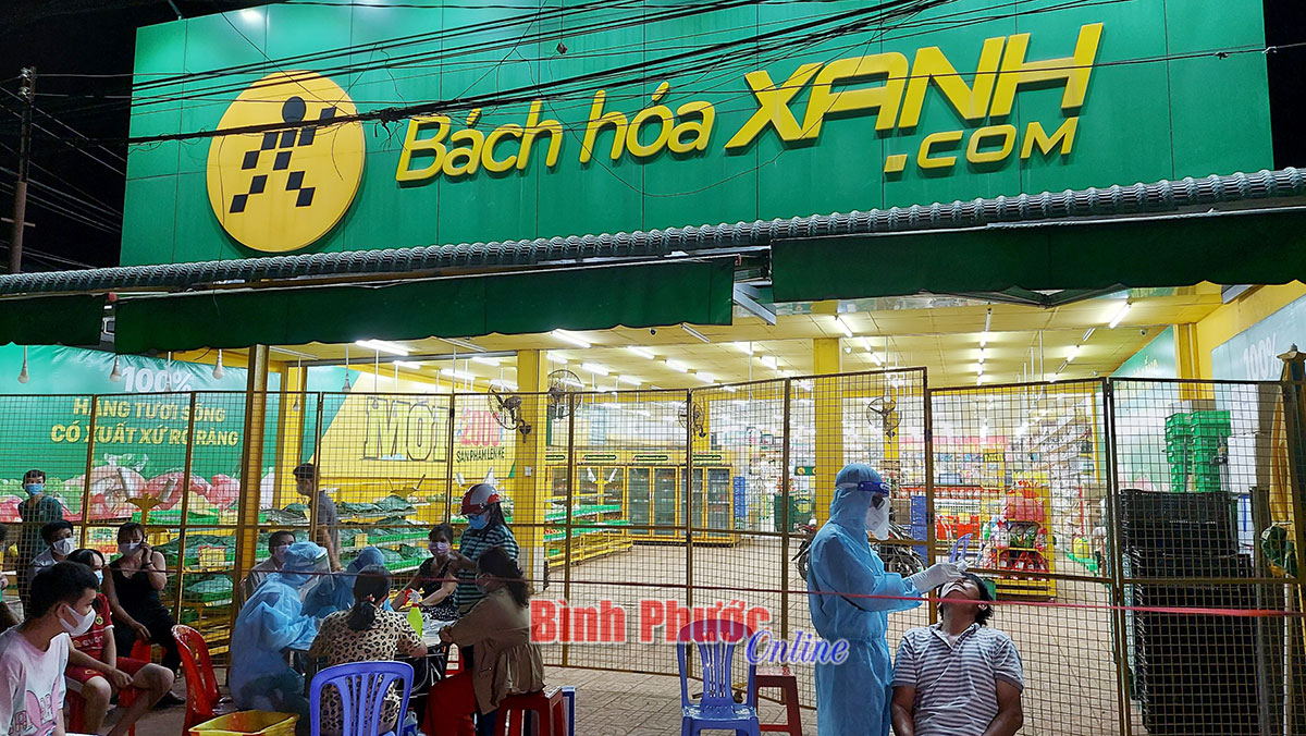 Người dân tập trung tại khu vực Cửa hàng Bách Hóa Xanh, xã Minh Lập để chờ lấy mẫu xét nghiệm