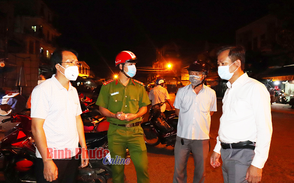 Chủ tịch UBND, Trưởng Ban chỉ đạo phòng, chống dịch Covid-19 thành phố Đồng Xoài Nguyễn Minh Bình trực tiếp chỉ đạo việc kiểm tra, lấy mẫu xét nghiệm tại chợ Đồng Xoài ngay trong đêm