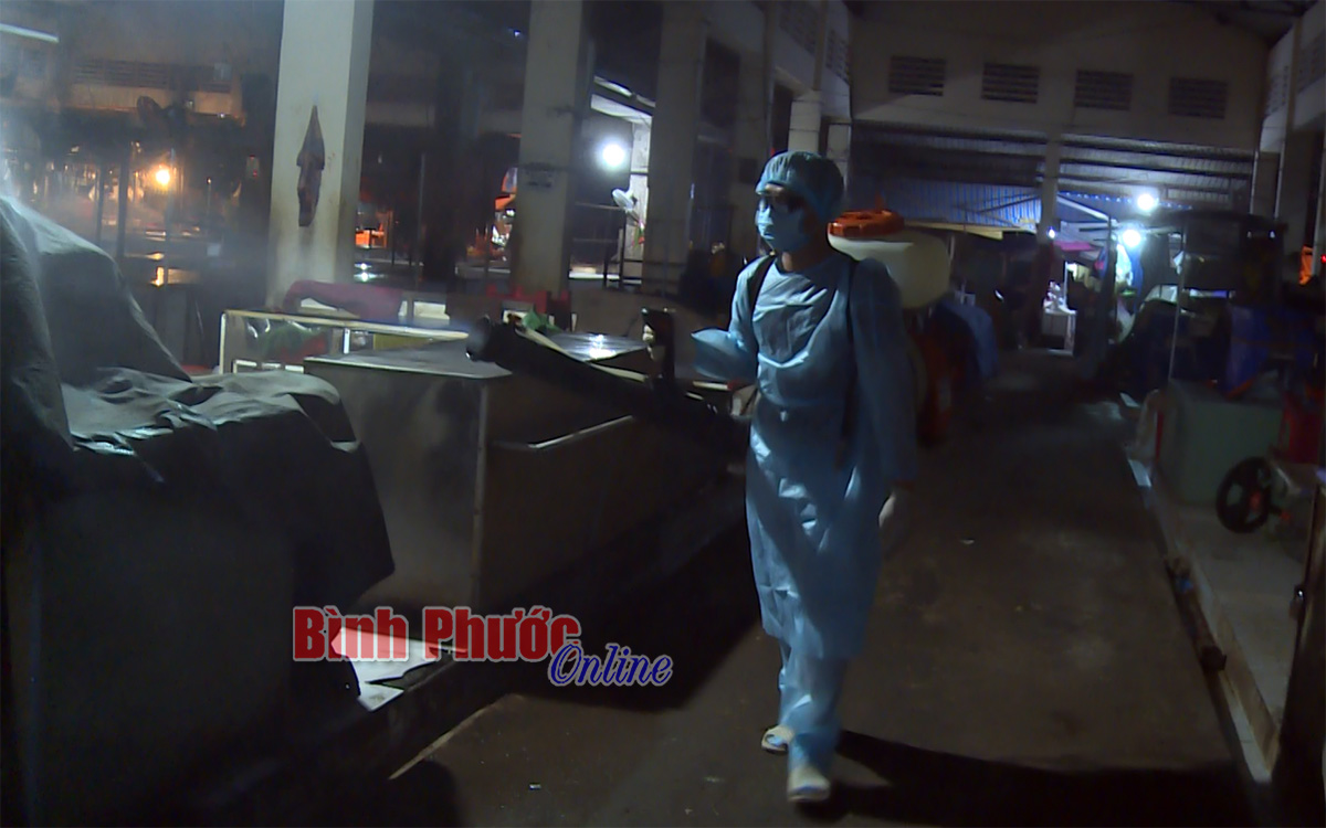 Trong đêm 3-7, Ban quản lý chợ đã phối hợp với Ban chỉ huy Quân sự, Trung tâm y tế thành phố tổ chức phun xịt khử khuẩn toàn bộ khuôn viên chợ. Xe lưu động của Ban chỉ huy Quân sự tỉnh đã phun xịt dọc các tuyến giao thông bên trong khuôn viên chợ. Từng lô, từng gian hàng cũng được các thành viên Ban quản lý chợ len lỏi vào phun khử khuẩn toàn bộ.