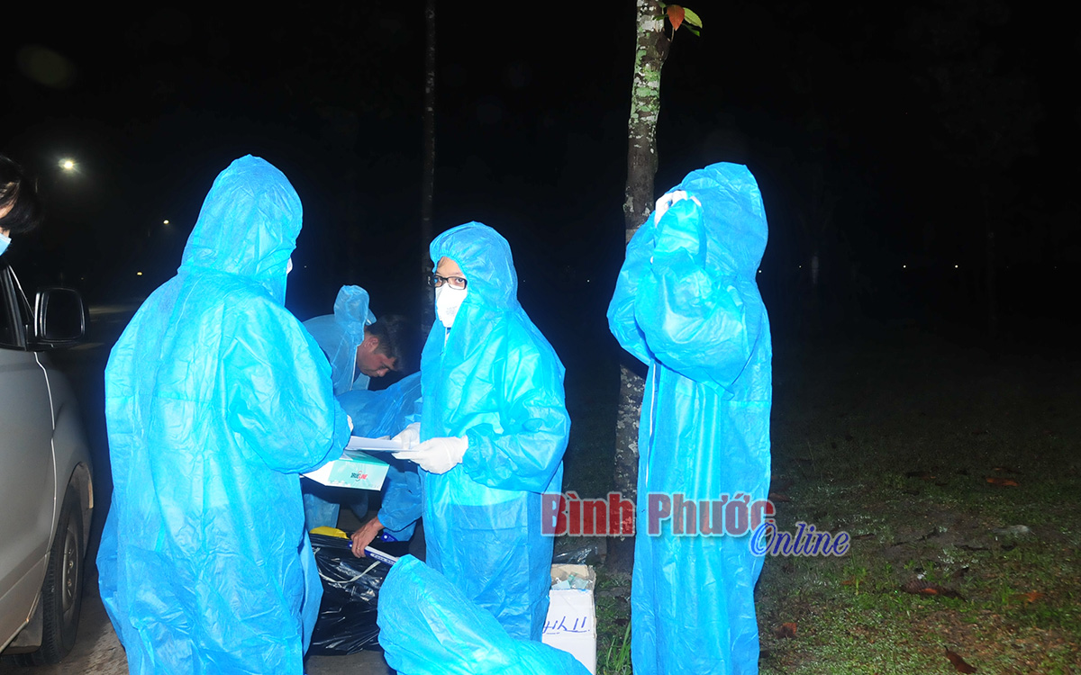 Lực lượng y tế huyện Bù Đăng đã có mặt để hỗ trợ lấy mẫu xét nghiệm truy vết ngay trong đêm