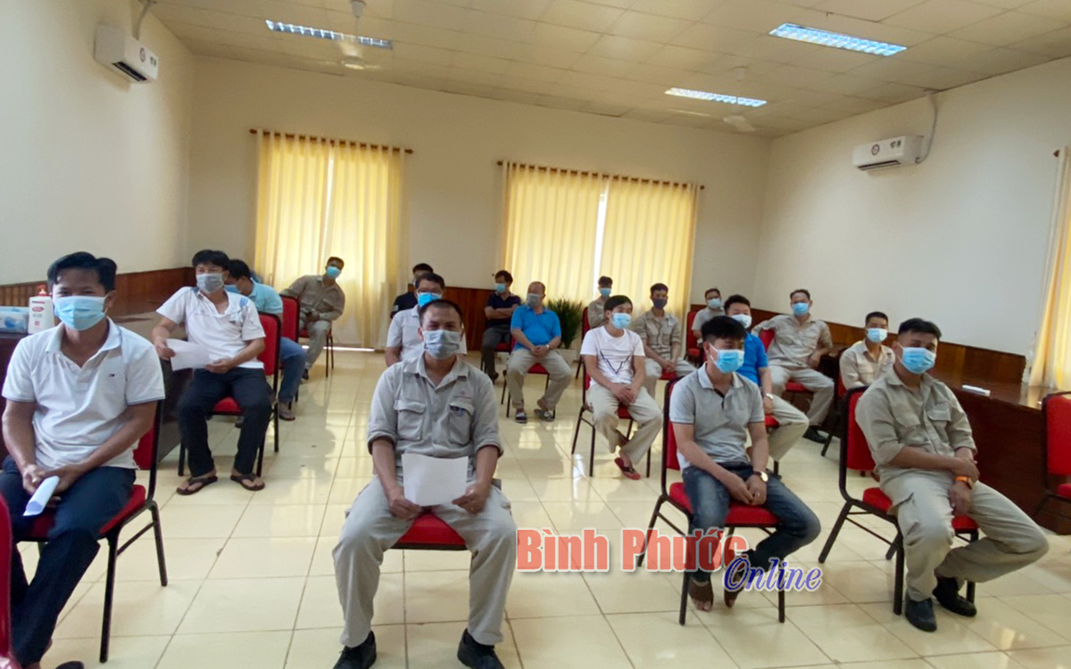 Theo đó, ngay từ đầu tháng 7, công ty đã khẩn trương phối hợp với Trung tâm Y tế thị xã Phước Long tiến hành phun khử khuẩn toàn bộ khu vực nhà máy, khu nghỉ ca tập trung, khu cư xá công ty. Đồng thời tiến hành lấy mẫu test nhanh kháng nguyên với SARS-CoV-2 cho toàn thể cán bộ, công nhân viên nhằm sàng lọc và đánh giá mức độ nguy cơ tiềm ẩn của dịch bệnh để chủ động phương án ứng phó, phòng, chống dịch hiệu quả. Kết quả, 100% âm tính với virus SARS-CoV-2.