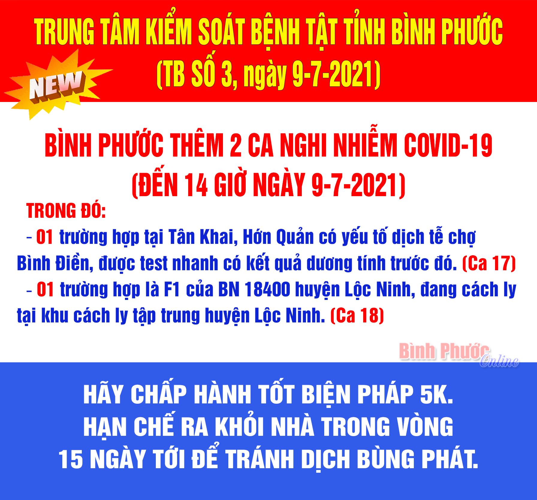 * Khu vực 3 chợ Tân Khai, Đồng Nơ, Hớn Quản: từ 2-7 đến ngày 5-7-2021.