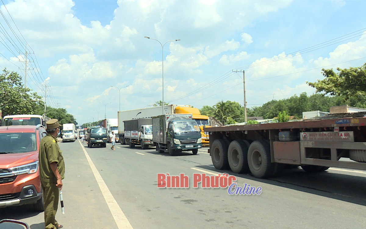 Chốt kiểm soát giao thông và phòng, chống dịch Covid -19 trên quốc lộ 13 chiều hôm nay thông thoáng hơn mọi ngày. Nhiều tài xế vui vẻ quay đầu xe vì chở hàng hóa không thiết yếu.