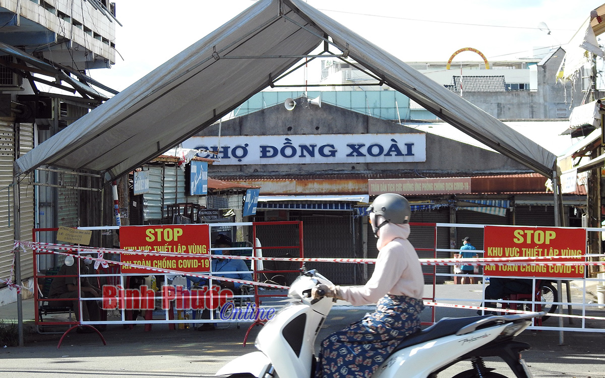 Chợ Đồng Xoài, phường Tân Bình, thành phố Đồng Xoài tạm thời bị phong tỏa do phát hiện ca dương tính Covid-19
