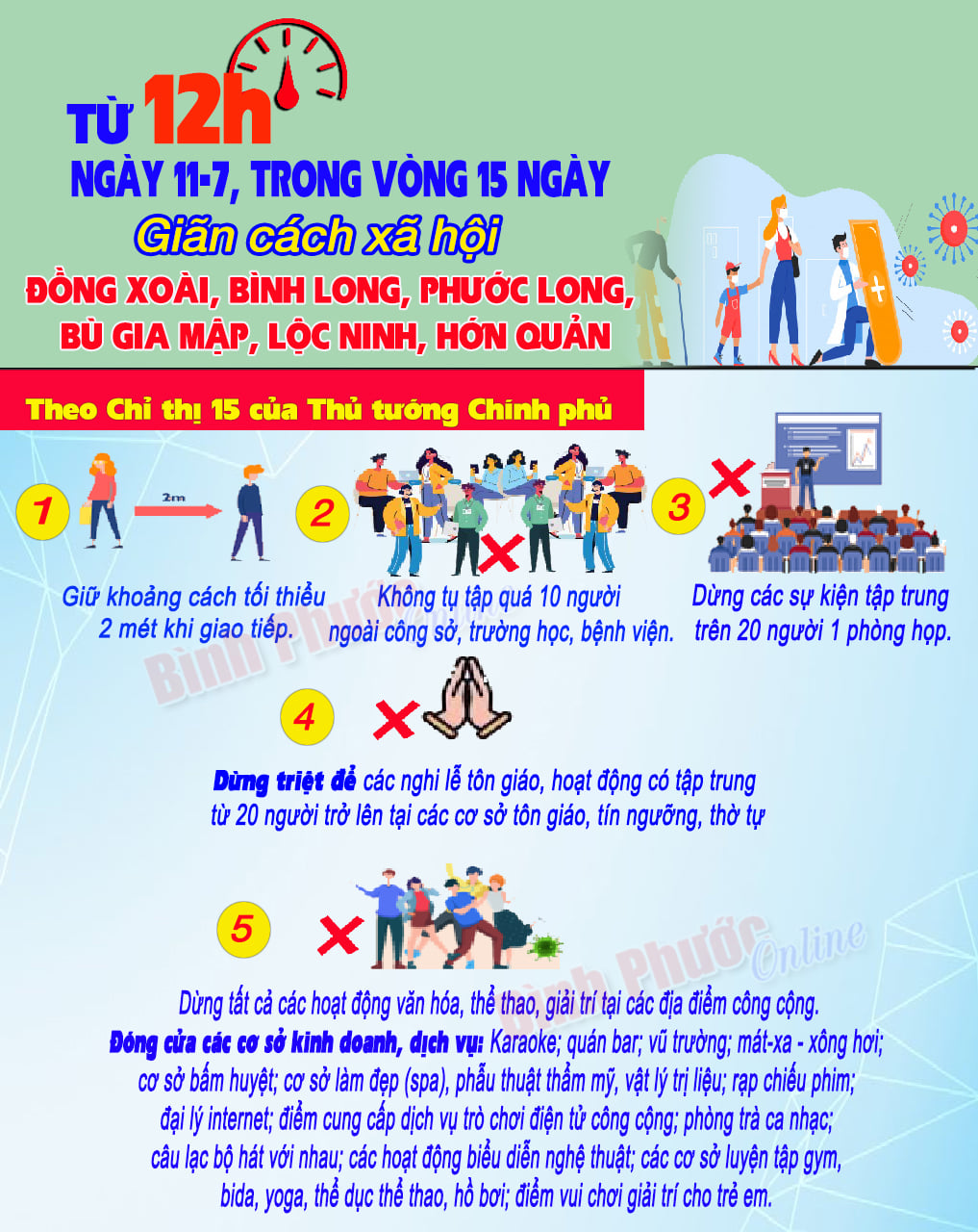 UBND thị xã đã ban hành quyết định phong tỏa tạm thời khu vực chợ Bình Long với diện tích khoảng 20.000m2, với khoảng 600 tiểu thương và thực hiện giãn cách xã hội theo Chỉ thị 16/CT-TTg của Thủ tướng Chính phủ để kiểm soát dịch bệnh. Đồng thời, giãn cách xã hội toàn thị xã theo Chỉ thị 15/CT-TTg trong vòng 15 ngày, bắt đầu từ 12 giờ trưa nay (11-7).