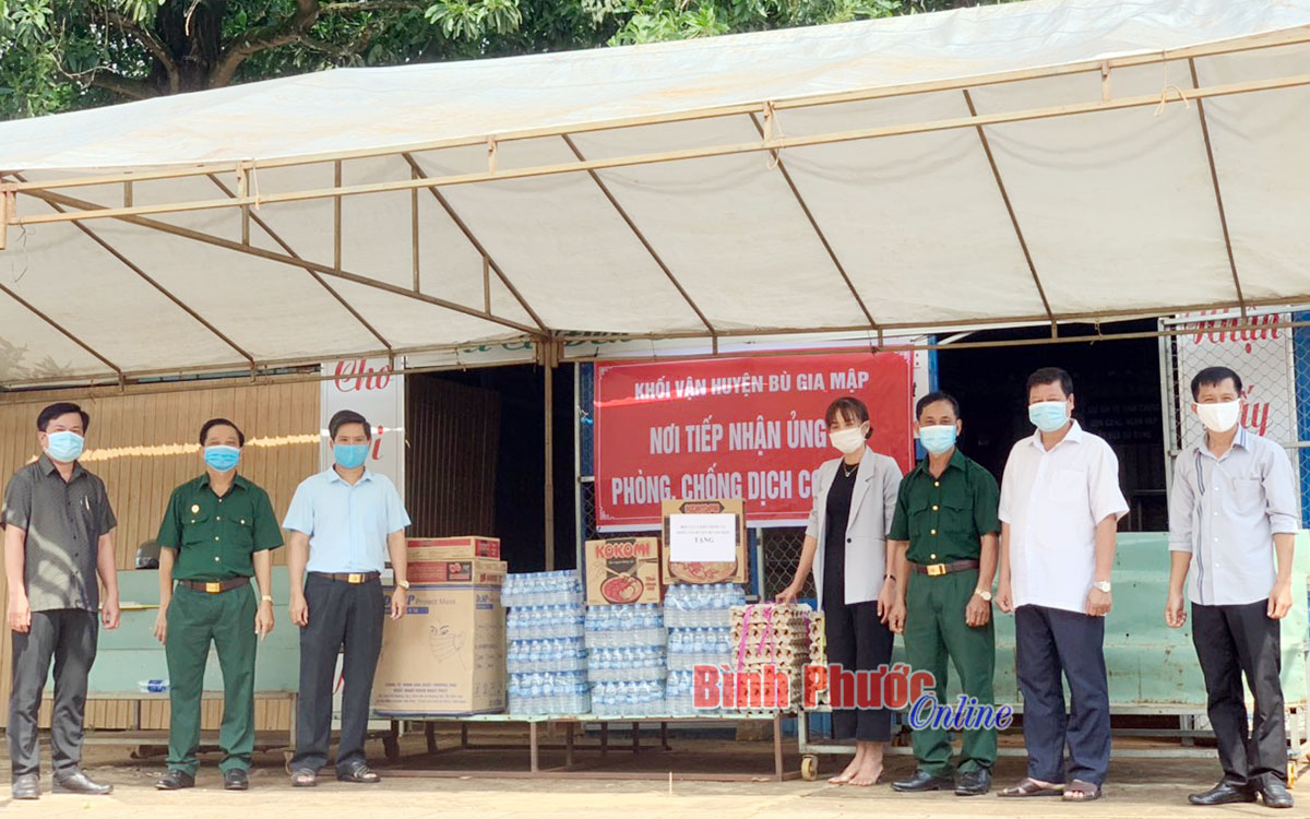 Các tổ chức đoàn thể, chính trị của địa phương tặng lương thực, thực phẩm cho lực lượng đang làm nhiệm vụ, cũng như người dân trong các khu tạm thời bị phong tỏa để thực hiện công tác phòng, chống dịch.