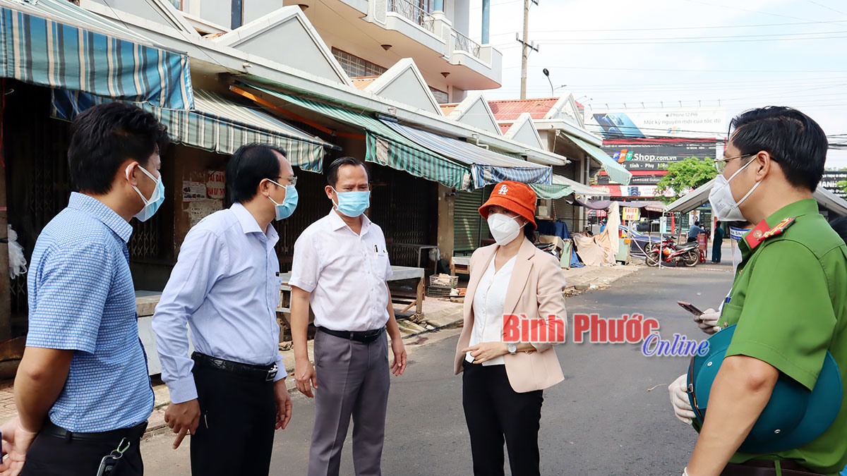 Ban chỉ đạo phòng, chống dịch Covid-19 thành phố Đồng Xoài có mặt tại khu vực chợ Đồng Xoài để chỉ đạo thực hiện các biện pháp khống chế dịch lây lan