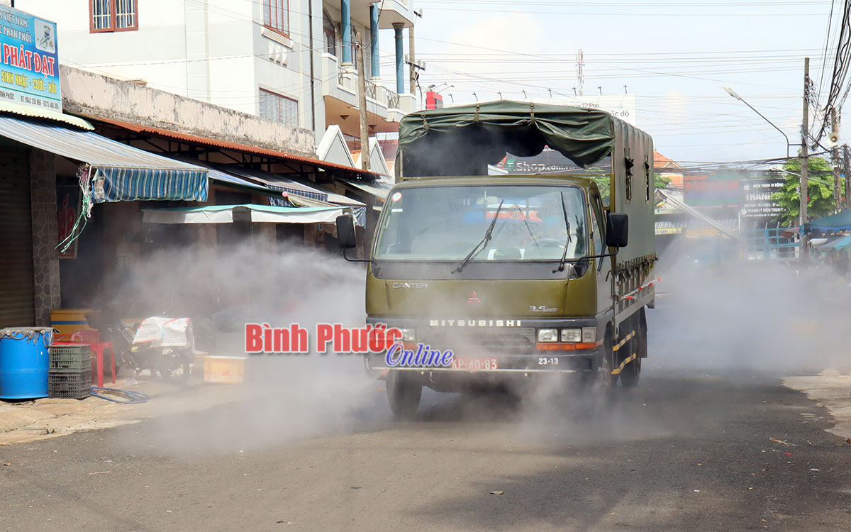 Ban chỉ huy Quân sự thành phố Đồng Xoài phun khử khuẩn toàn bộ khu vực chợ Đồng Xoài