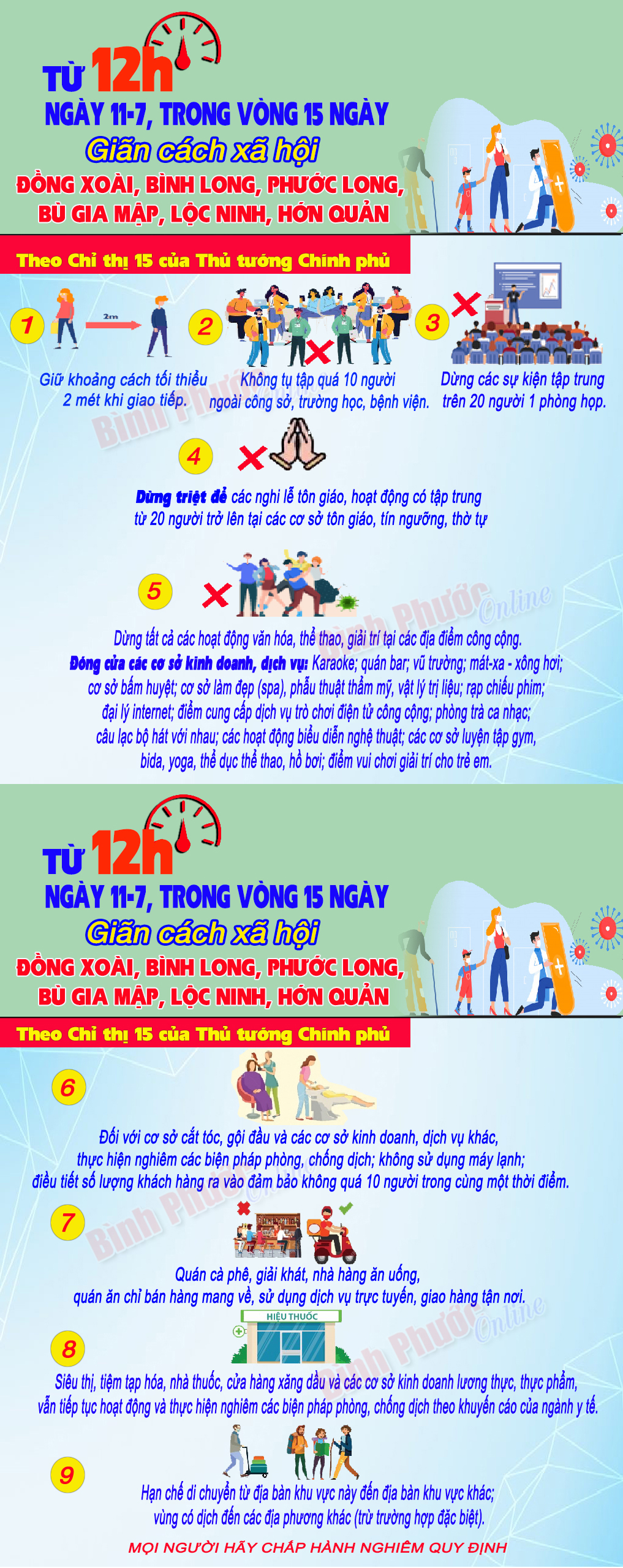 Ngay sau khi nhận được thông tin, ngành chức năng tỉnh, thành phố Đồng Xoài đã nhanh chóng thực hiện các biện pháp cần thiết để xác định yếu tố dịch tễ liên quan đến những trường hợp này để kịp thời đưa đi cách ly. Trong đêm 13-7, cán bộ y tế Trung tâm kiểm soát bệnh tật tỉnh và Trung tâm y tế thành phố đã xuống lấy mẫu tất cả những hộ dân đang sinh sống trong vực chợ, kể cả những khu vực cách xa nhà các ca dương tính sinh sống.