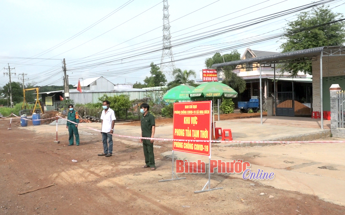 Huyện Chơn Thành đã chỉ đạo các xã tổ chức khoanh vùng phong tỏa tạm thời khu vực nhà ở của các ca dương tính thuộc ấp 3, xã Minh Thành khoảng 6 hộ dân; phong tỏa tạm thời khu vực ấp Suối Ngang, xã Nha Bích, với khoảng hơn 100 hộ dân liên quan đến các ca dương tính.