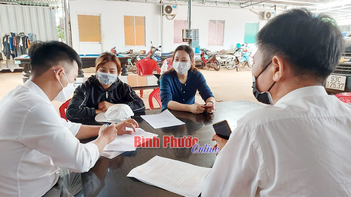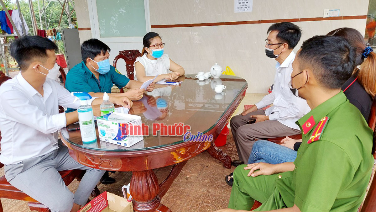 Bà Đoàn Thị Thanh, Giám đốc Công ty TNHH TM-DV Đắc Lộc làm việc với đoàn kiểm tra liên ngành huyện Bù Đăng về công tác phòng chống dịch Covid-19