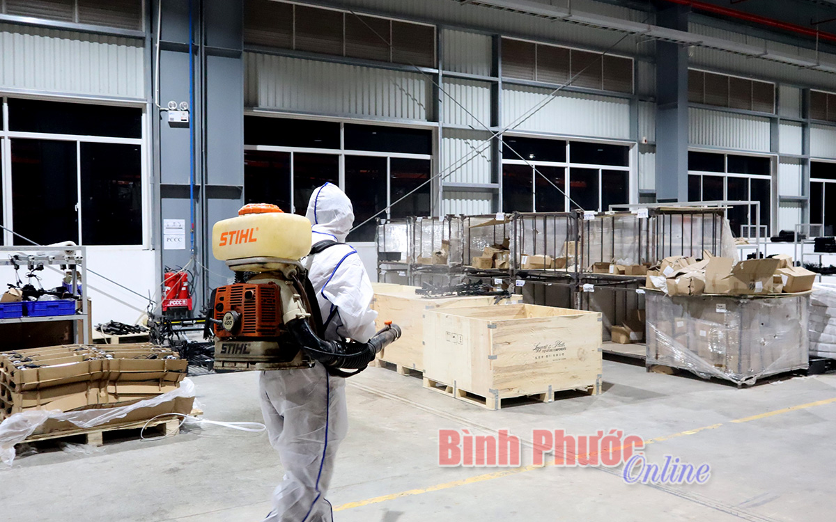 Trung tâm y tế thành phố Đồng Xoài phun khử khuẩn phòng, chống dịch Covid-19 tại khu công nghiệp Đồng Xoài 3