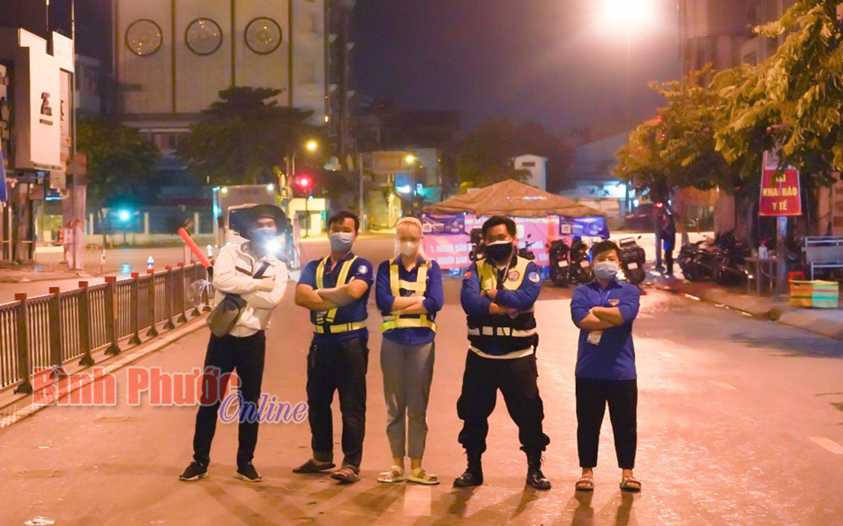 Đồng Thị Thu Hà (giữa) cùng đồng đội trực hỗ trợ tại chốt phòng chống dịch trên địa bàn TP. Hồ Chí Minh