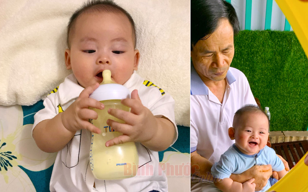 Con trai Bùi Uy Dũng 4 tháng tuổi của Thượng úy Bùi Tấn Thành rất kháu khỉnh và luôn mong đợi ngày về của bố