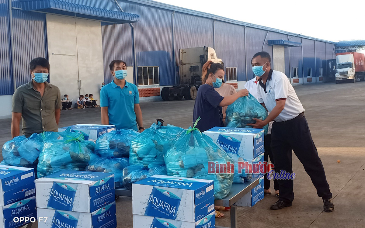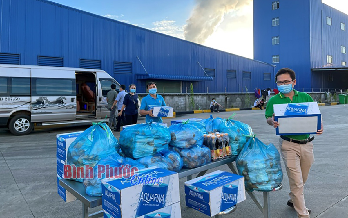 Đoàn đã trao tặng cho công nhân Công ty cổ phần FSC (300 ổ bánh mì) và Công ty cổ phần Chuang Yuan Việt Nam (340 ổ bánh mì) thuộc KCN Nam Đồng Phú; 360 ổ bánh mì cho công nhân Công ty TNHH Shyang Ying (KCN Đồng Xoài II). Đây là những công ty đang thực hiện công tác phòng chống dịch Covid-19 theo phương châm 3 tại chỗ gồm: ăn, ngủ và làm việc tại chỗ để đảm bảo vừa sản xuất, vừa phòng, chống dịch.