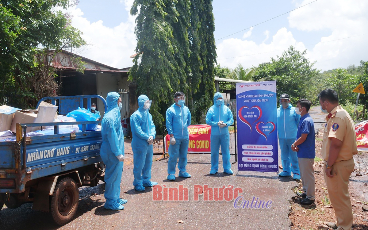 Tổng số quà trao tặng tại các địa phương gồm 3 tấn gạo, 25 thùng nước suối đóng chai, gần 80 chai nước sát khuẩn, 2.500 khẩu trang y tế… do Công ty Hyundai Bình Phước và Chi đoàn BPTV đóng góp.