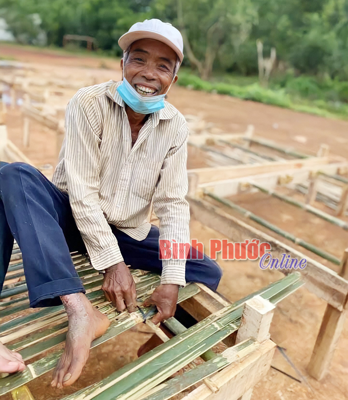 Nét mặt rạng ngời, nụ cười hạnh phúc của già làng Điểu Phụng (ấp Sóc Răng, xã Thanh Bình) khi cùng nhân dân đóng giường gửi tặng khu cách ly