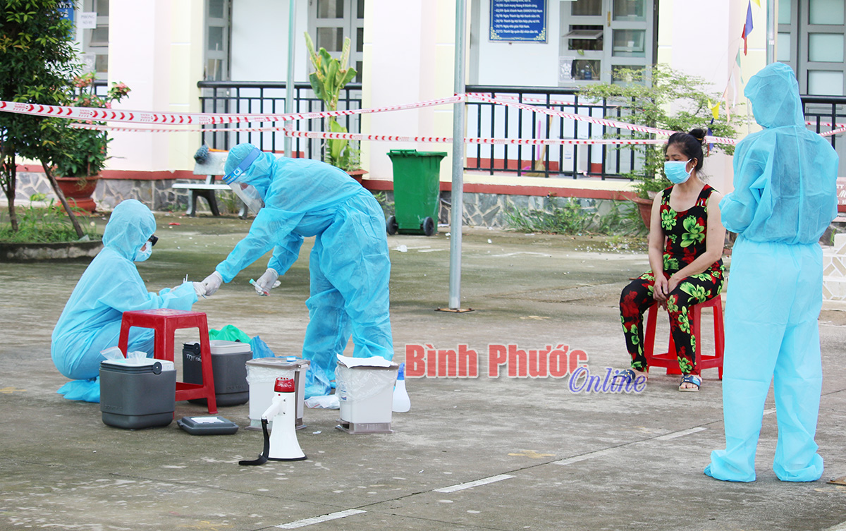 Ngày 23-7, chị T có biểu hiện ho, sốt trên 38 độ. Trung tâm y tế huyện tiến hành lấy mẫu xét nghiệm. Qua 2 lần test nhanh, chị T đều có kết quả dương tính. Chiều cùng ngày, trung tâm đã gửi mẫu đến CDC tỉnh xét nghiệm PCR để khẳng định kết quả. Khoảng 19 giờ, ngày 23-7, qua thông báo của CDC Bình Phước, chị T. đã bị nhiễm SARS-CoV-2.