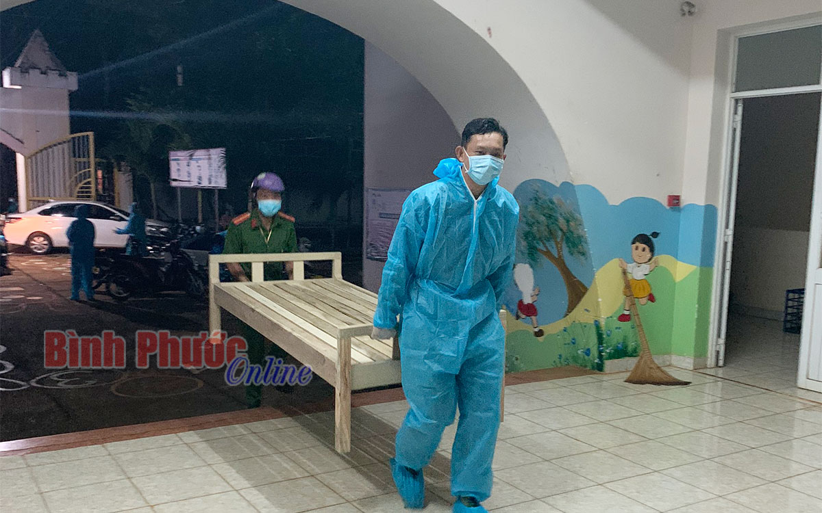 Ngay từ chiều tối, lực lượng chức năng, tình nguyện viên đã chuẩn bị giường do các tổ chức, cá nhân đóng thiện nguyện đưa vào các khu cách ly