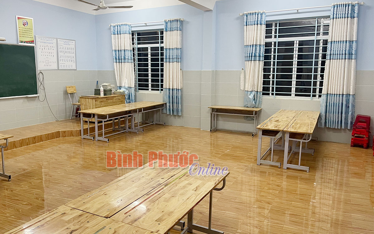 Khuôn viên trường học được dọn vệ sinh sạch sẽ ngay trong đêm làm nơi cách ly tập trung tại xã