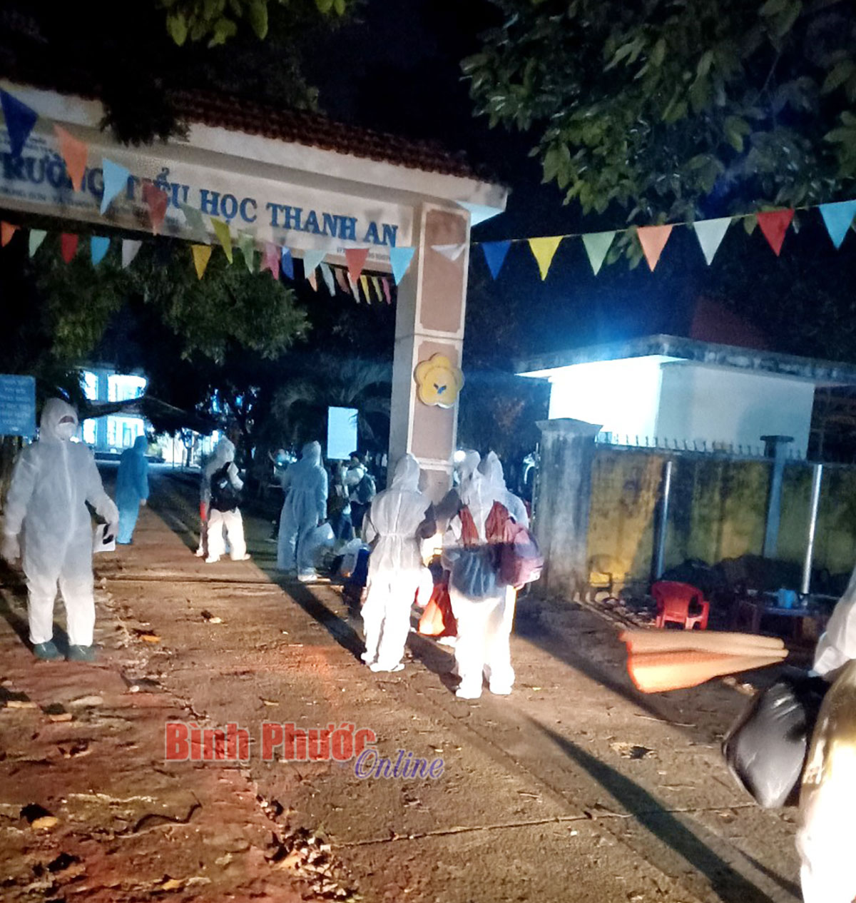Lãnh đạo huyện Hớn Quản và các thành viên Ban chỉ đạo phòng, chống dịch Covid-19 của huyện có mặt ngay trong đêm để kiểm tra, đôn đốc các xã trong việc đón người đi cách ly tập trung