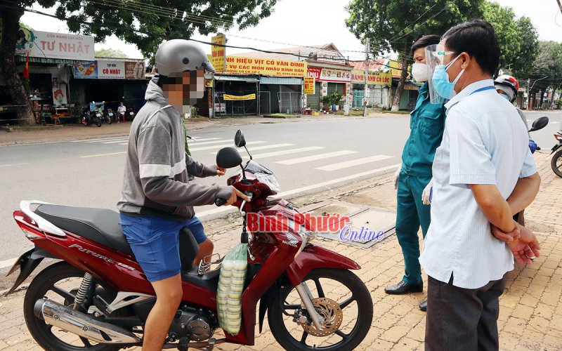 Nhiều người bị phạt tiền triệu vì ra đường không có lý do chính đángBPO - Ngày 25-7, UBND phường Tân Phú (TP. Đồng Xoài) triển khai tổ chức các tổ kiểm soát trên các tuyến đường trục chính ra, vào phường nhằm kiểm soát, nhắc nhở và xử lý người dân đi ra đường với lý do không chính đáng, không thật sự cần thiết.