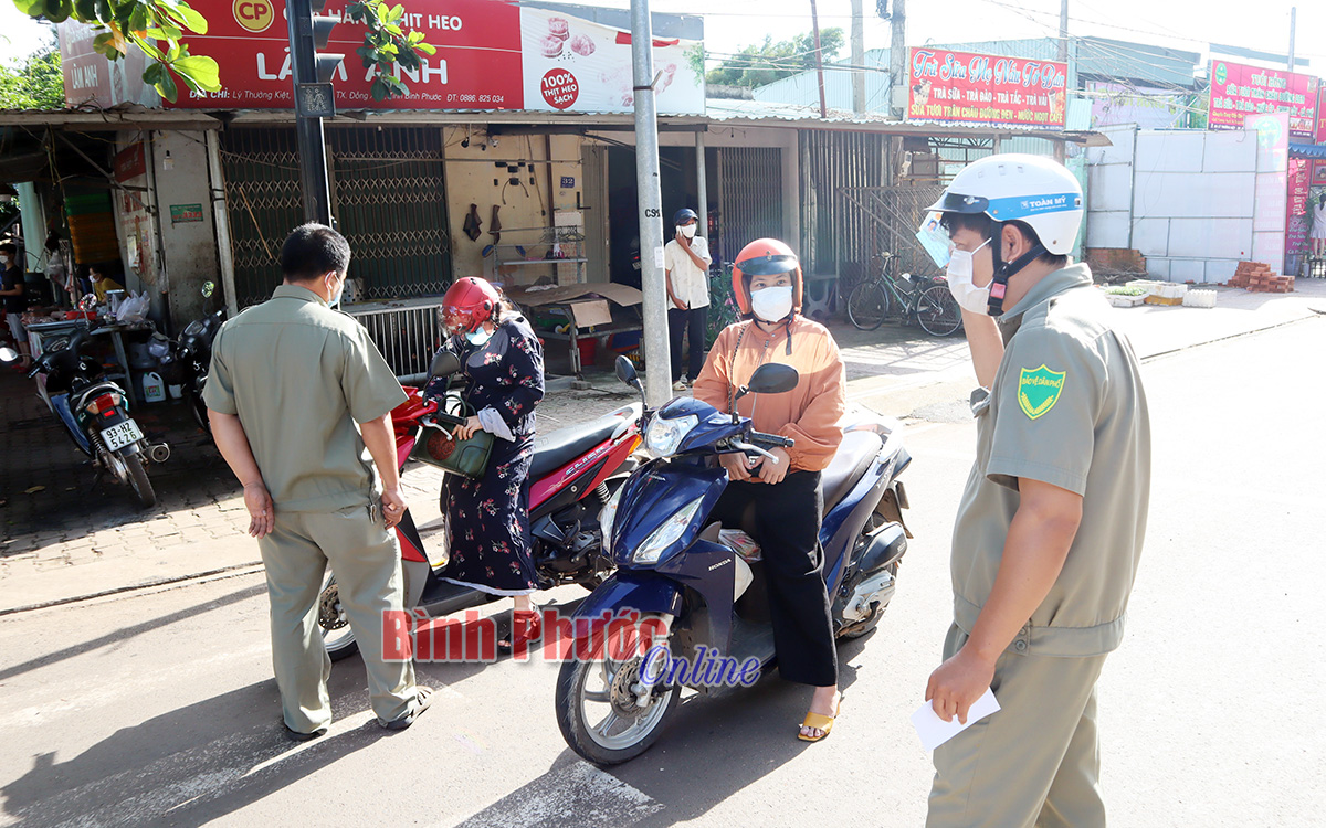 Do từ ngày 25-7, các phường, xã đã in và phát hành phiếu đi mua lương thực, nhu yếu phẩm (gọi chung là phiếu đi chợ) cho các hộ dân. Tuy nhiên, qua kiểm tra, ngoài một số người có phiếu đi chợ, còn có nhiều trường hợp đi ra ngoài với nhiều lý do khác nhau. Vì vậy tất cả các trường hợp đi lại đều được dừng lại để kiểm tra. Đối với các trường hợp không chứng minh được lý do chính đáng, hoặc không có các giấy tờ theo quy định đều được yêu cầu quay trở lại.