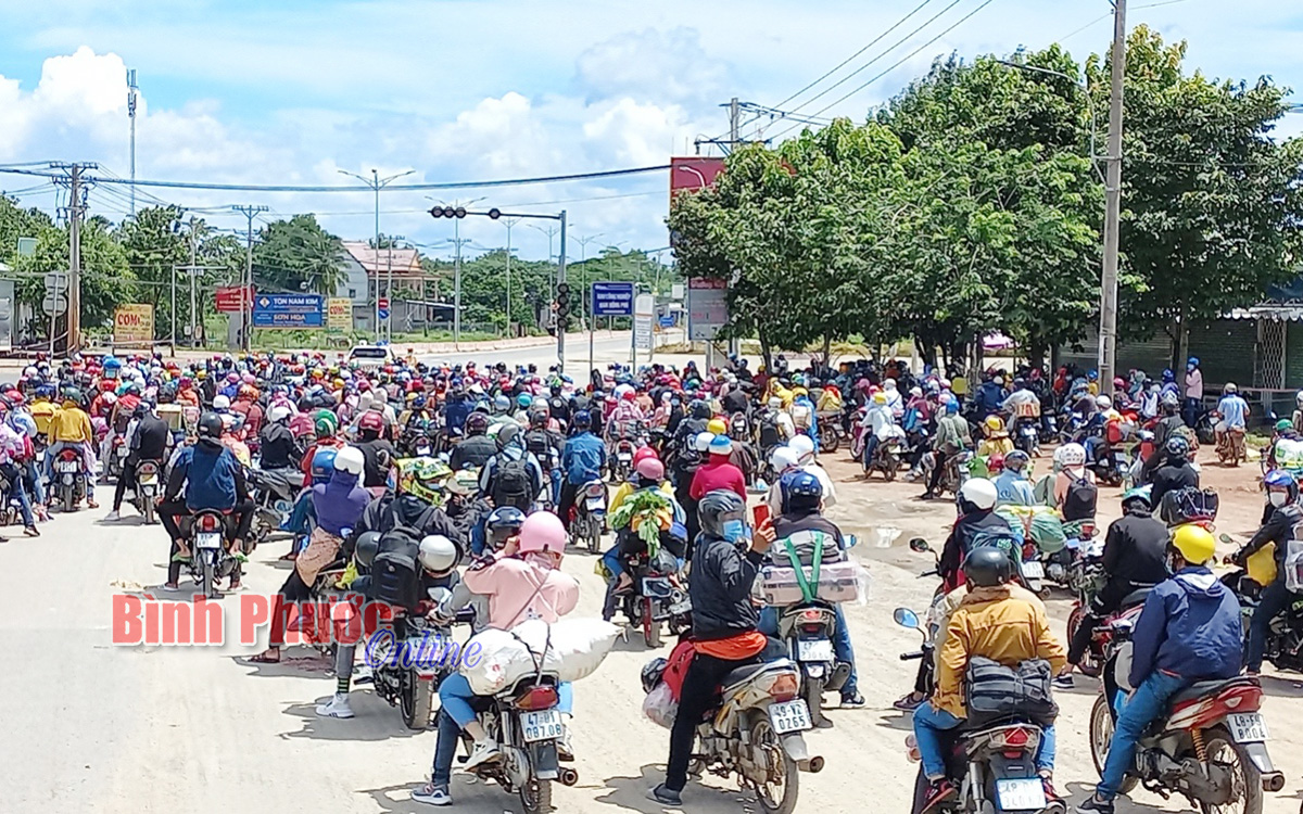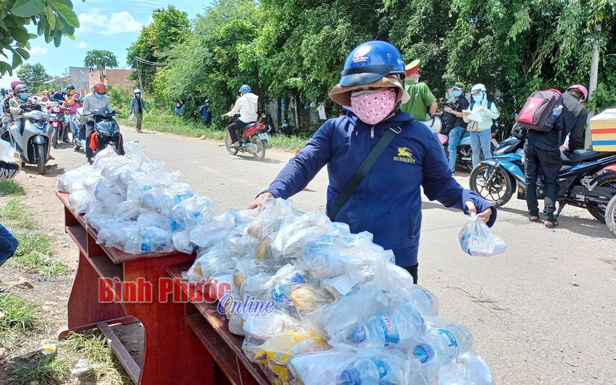 Để hỗ trợ người dân trở về quê tránh dịch thuận tiện, an toàn, thông suốt, tránh ùn tắc, các cơ quan chức năng của tỉnh đã bố trí lực lượng và phương tiện chuyên dụng thực hiện nhiều đợt dẫn đường, bảo đảm an toàn cho hàng chục ngàn người dân di chuyển tới địa bàn giáp ranh. Bên cạnh đó, các nhà hảo tâm, mạnh thường quân đã tổ chức quyên góp và hỗ trợ thức ăn, nước uống ngay tại chốt kiểm soát dịch Covid-19 xã Tân Lập, huyện Đồng Phú để khách đường xa không bị lỡ bữa, vì tất cả quán giải khát và quán ăn trên đường đã đóng cửa.