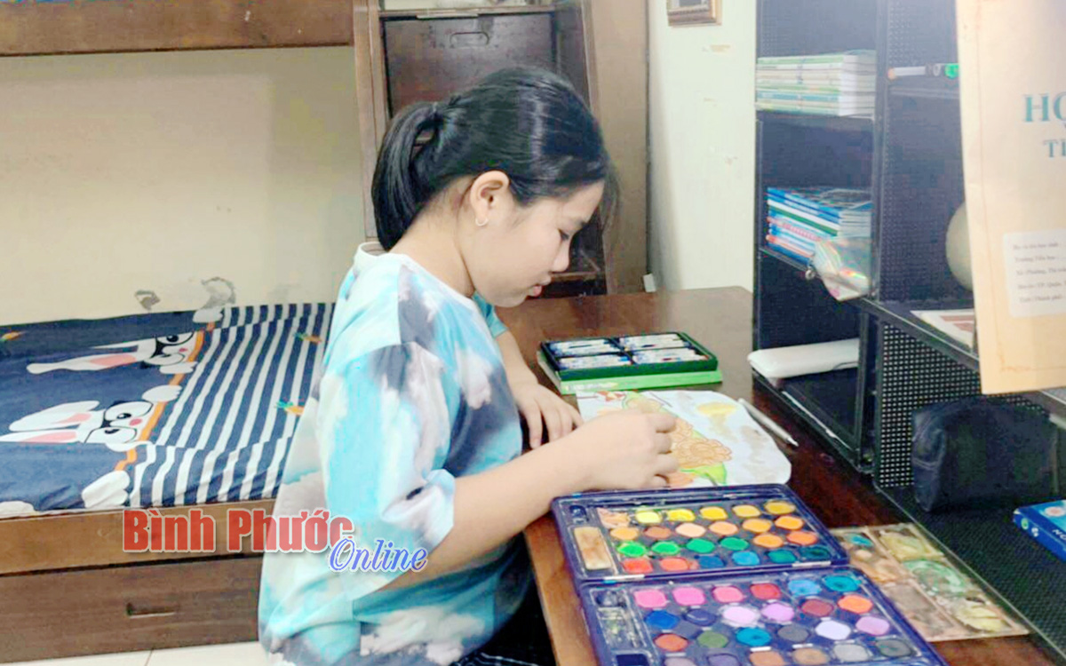 Không thể tham gia các hoạt động ngoại khóa trong hè do dịch Covid-19, nhiều trẻ vẫn tự rèn luyện kỹ năng, năng khiếu theo sở thích cá nhân tại nhà. Ảnh bé Gia Vy dành thời gian ở nhà vẽ tranh, rèn luyện năng khiếu