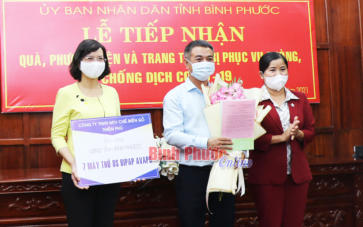 Công ty TNHH MTV Chế biến gỗ Thiên Phú trao tặng 7 máy thở ô xy. Công ty cổ phần sản xuất dịch vụ và thương mại Phúc Thịnh trao tặng 7 máy thở ô xy. Công ty TNHH Chế biến gỗ Hải Ngân trao tặng 3 máy thở ô xy. Công ty TNHH MTV gỗ Hoàng Thông trao tặng 3 máy thở ô xy.